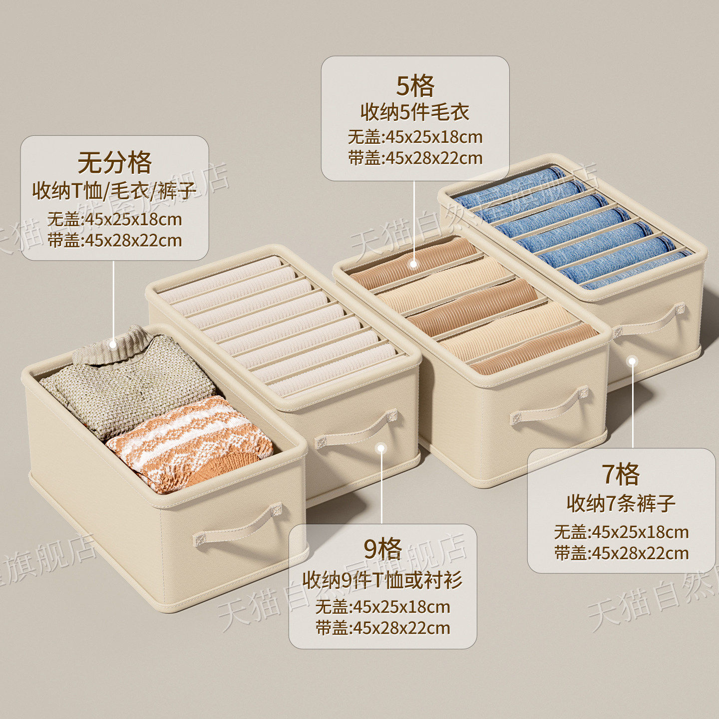 天山棉麻收纳筐衣柜收纳整理分层神器PP板可水洗衣服储物盒收纳箱