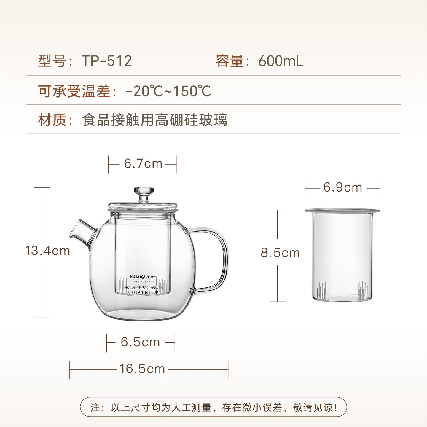 金灶TP-512高硼硅玻璃茶壶家用新款冲泡壶多功能红茶乌龙茶花茶壶
