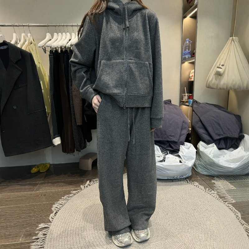 JVV SISTER气质休闲套装女2025冬季新款加绒连帽卫衣休闲裤两件套