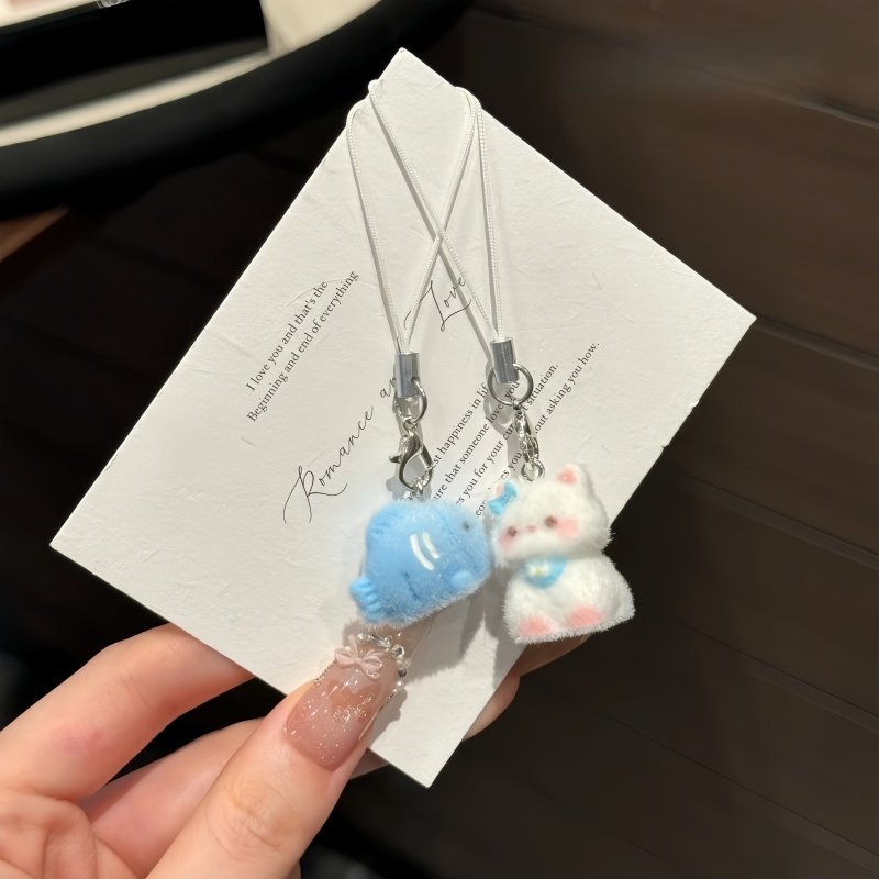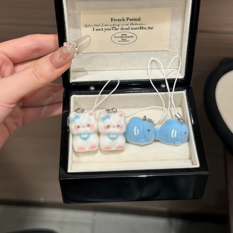 可爱卡通植绒猫咪小鱼挂件毛绒公仔包包挂饰钥匙扣情侣手机链挂绳