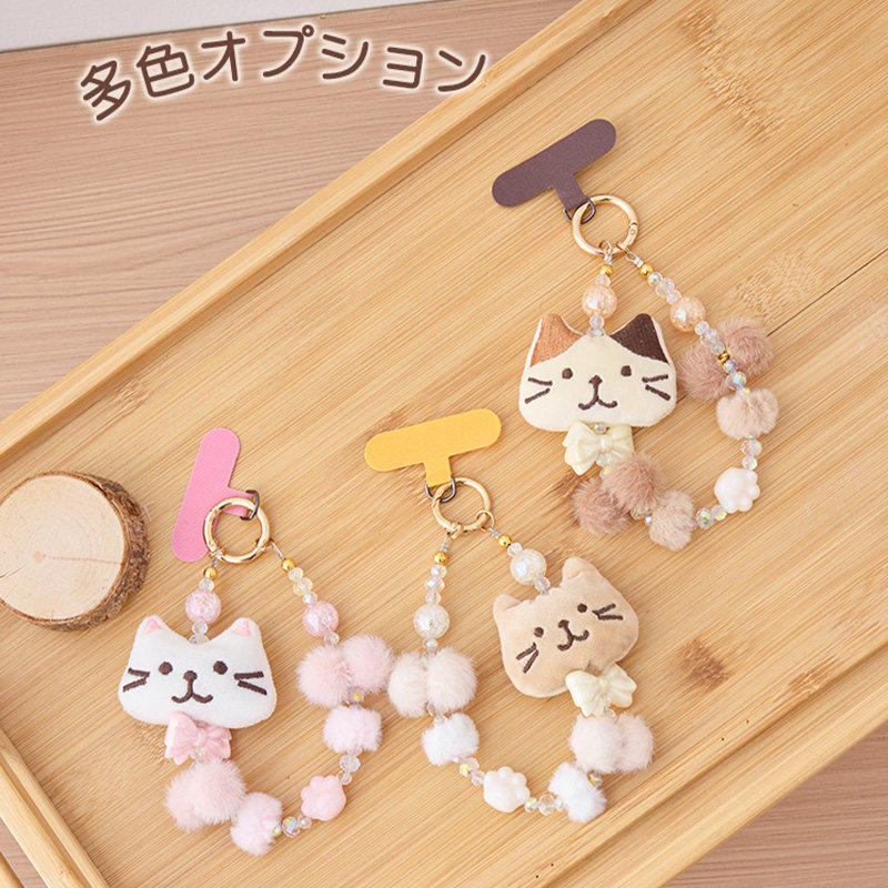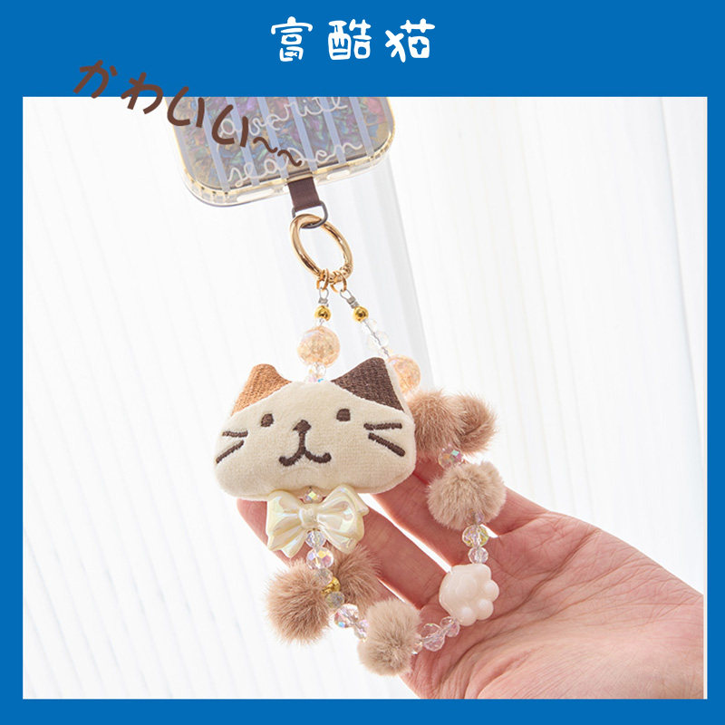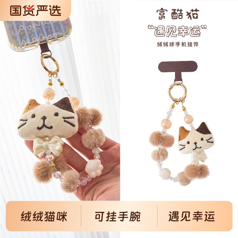 富酷猫绒球手机链挂手腕防丢手机挂绳可爱猫头手机挂饰包挂饰