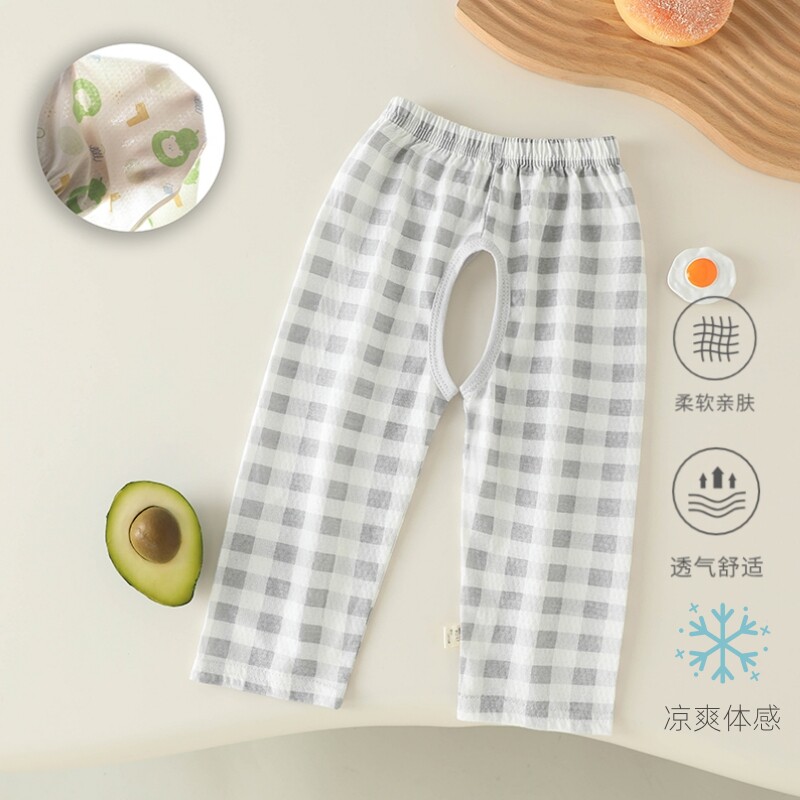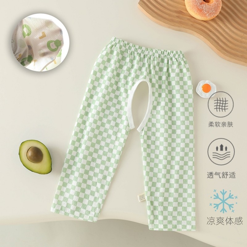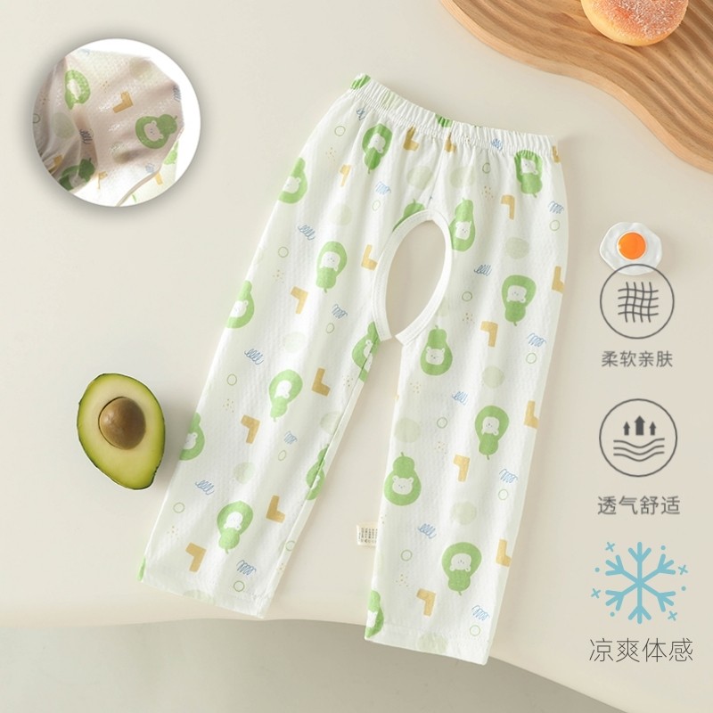 宝宝开裆裤纯棉薄款婴儿九分裤网眼透气睡裤小童空调裤子夏季宽松