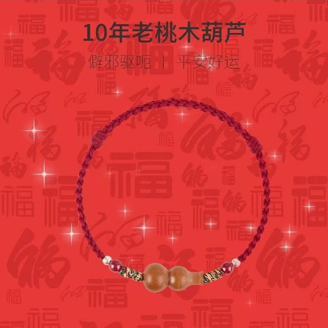 新国风朱砂手链 本命年红绳手链 桃木平安红绳脚链编织桃木男女款