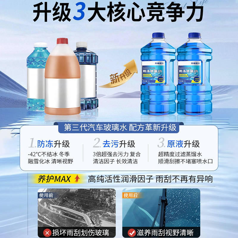 汽车防冻玻璃水零下40冬季25度车用四季通用除液雨刮水镀晶去油膜
