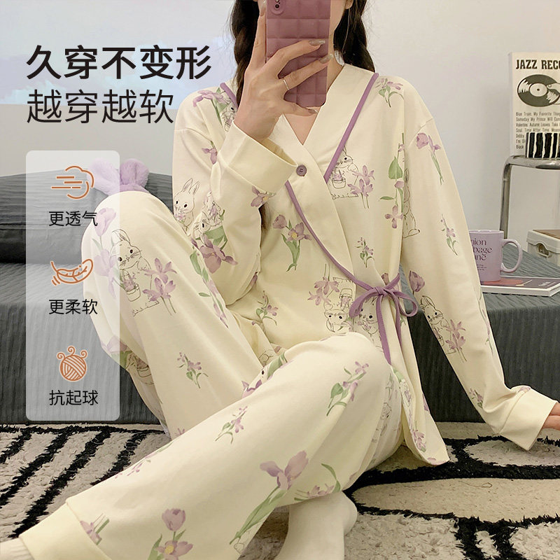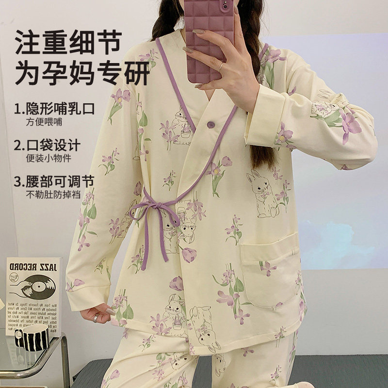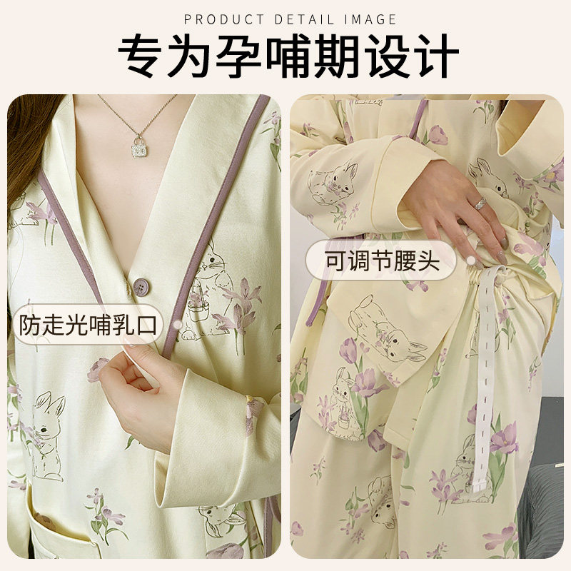 月子服纯棉春秋冬季产后12月份孕妇睡衣可外穿喂奶产妇哺乳家居服