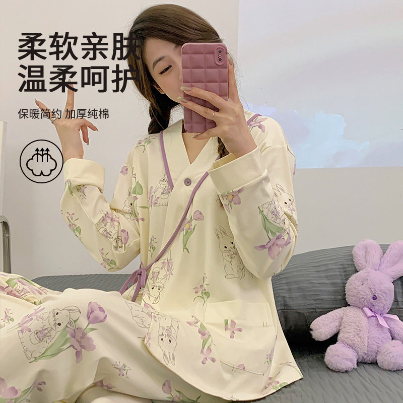 带胸垫月子服秋冬纯棉产后产妇11月份12孕妇家居服哺乳睡衣春秋季