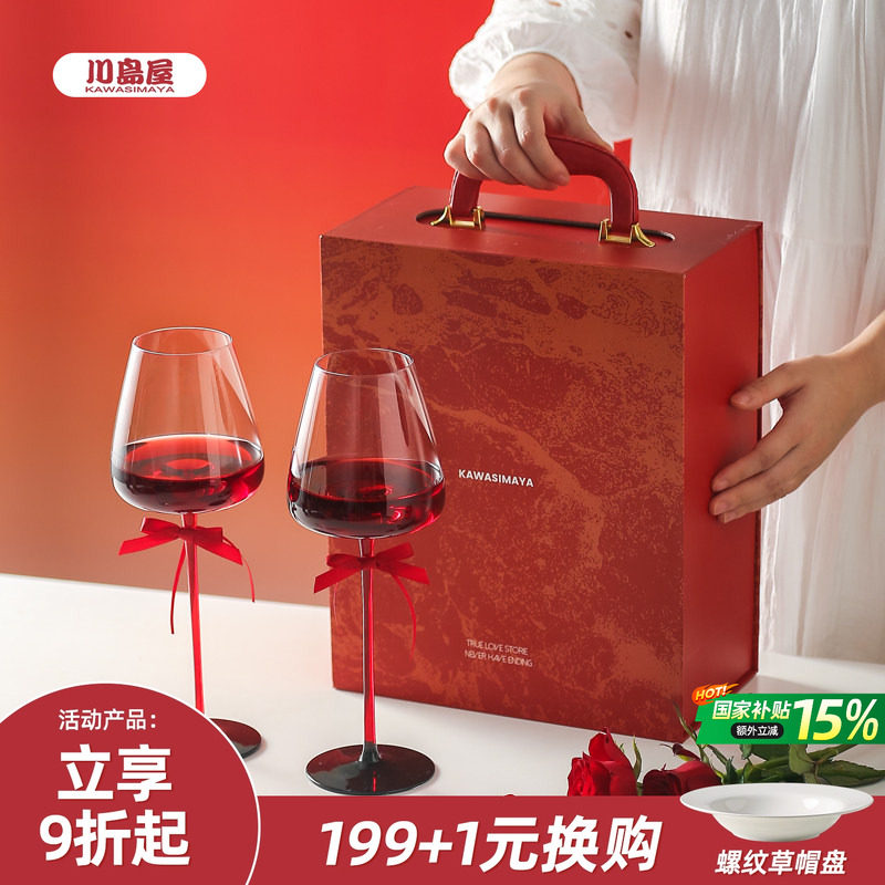 川岛屋红酒杯2个一对礼盒装高脚杯敬酒杯订婚结婚新婚礼物送新人