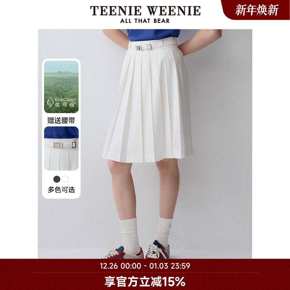TeenieWeenie小熊奥莱女装休闲时尚大摆百褶半身裙可拆卸腰带短裙