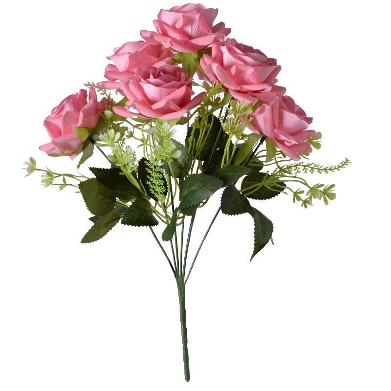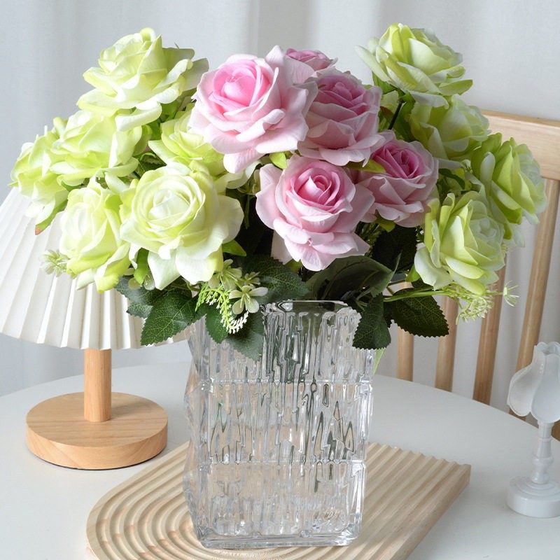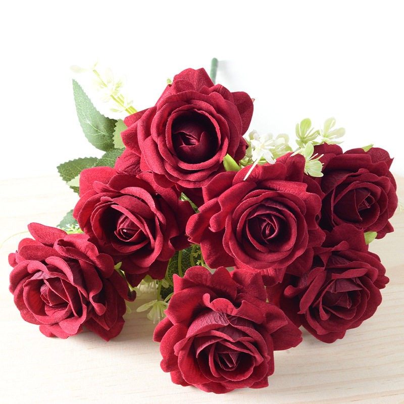 仿真花7头把束爱莎玫瑰 绒布角玫情人节装饰花束婚礼婚庆家居假花