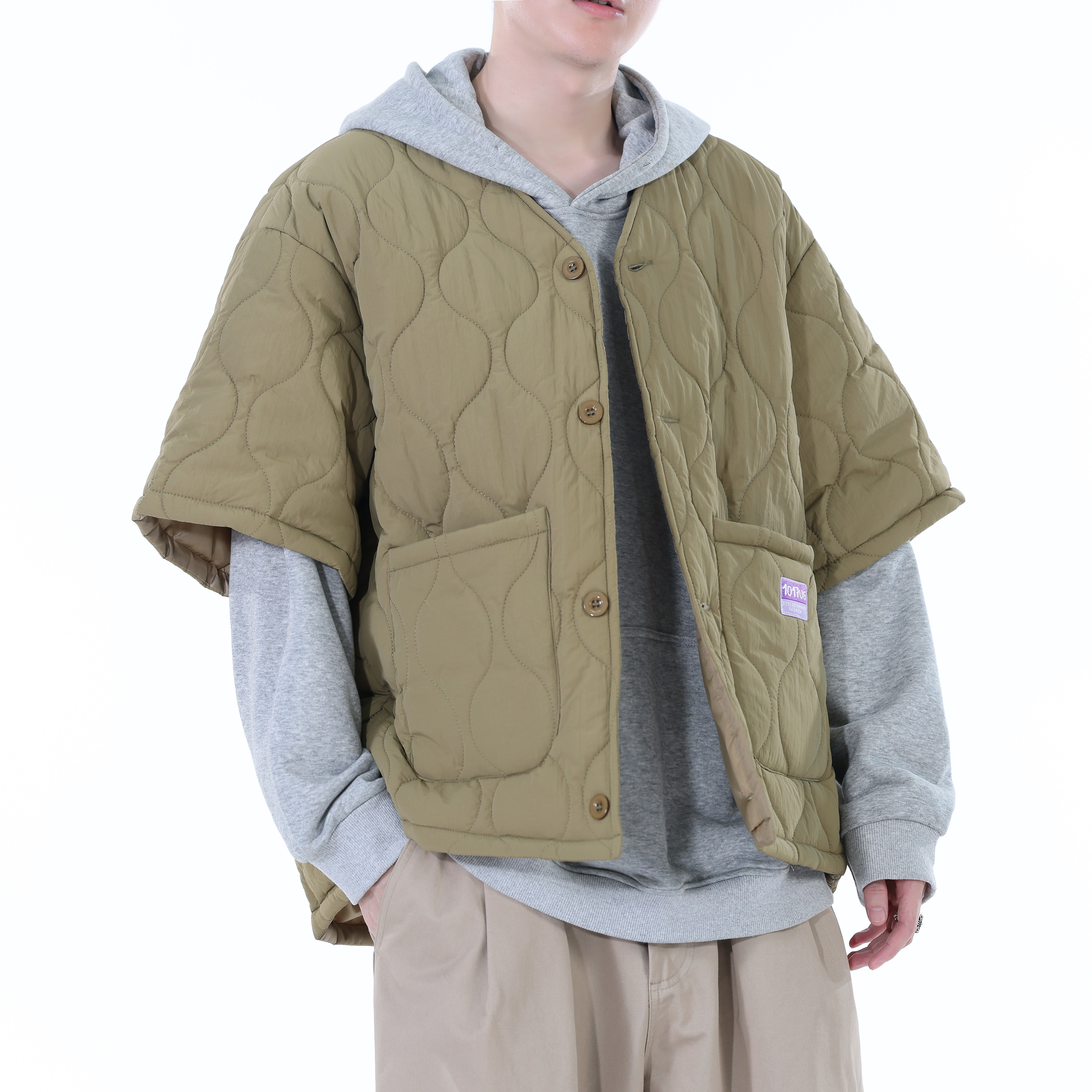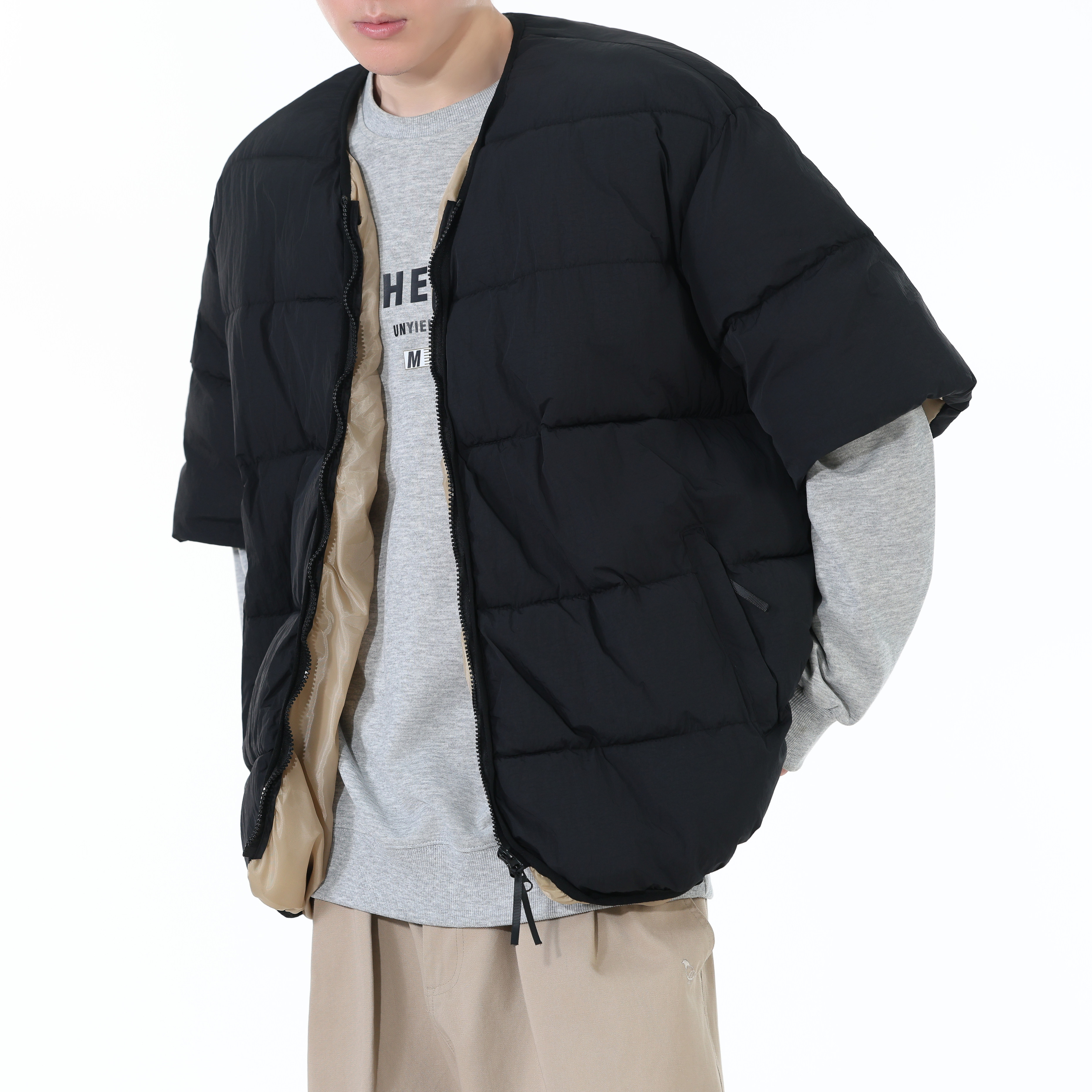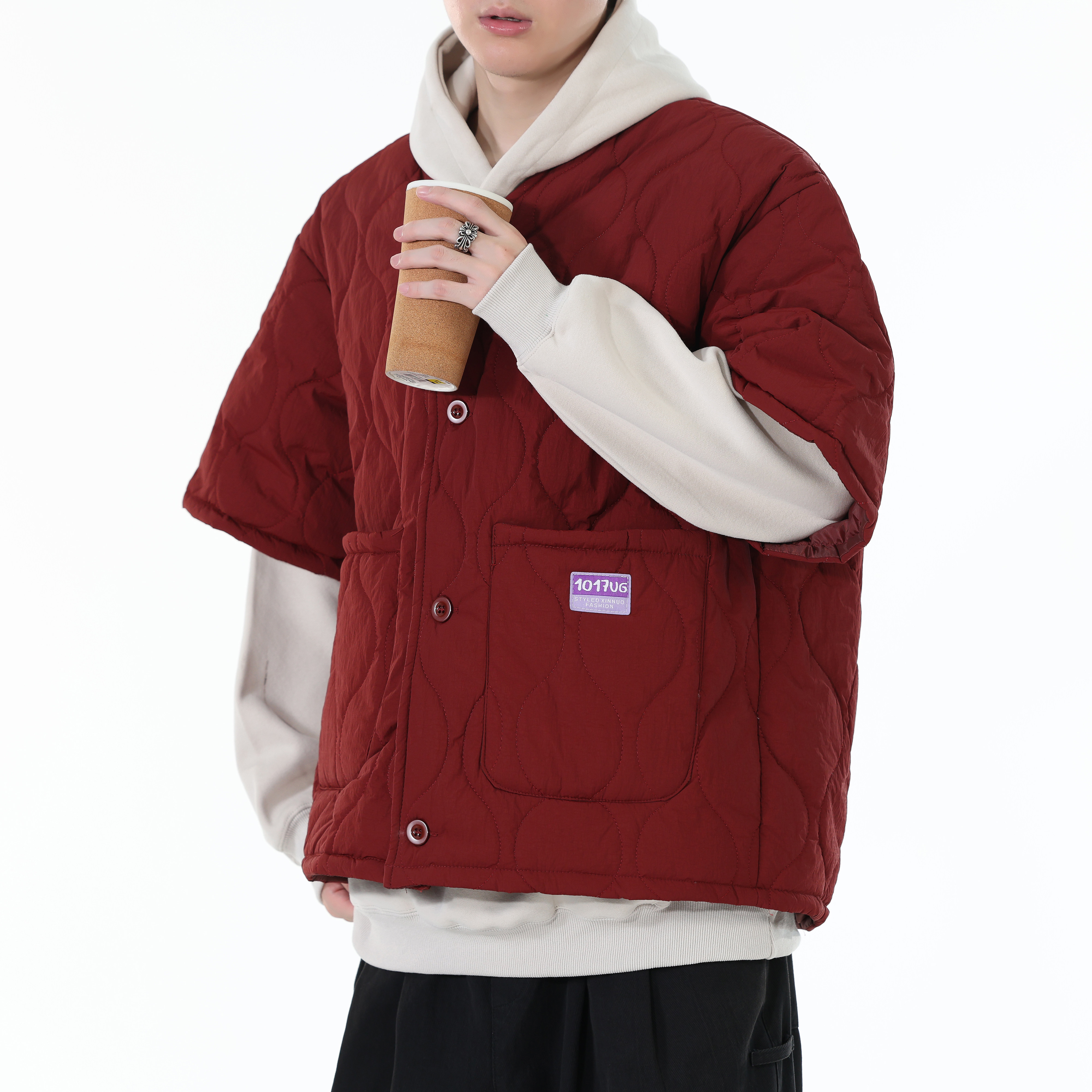 日系复古半袖潮牌羽绒棉马甲外穿男秋冬加厚棉衣宽松保暖坎肩外套