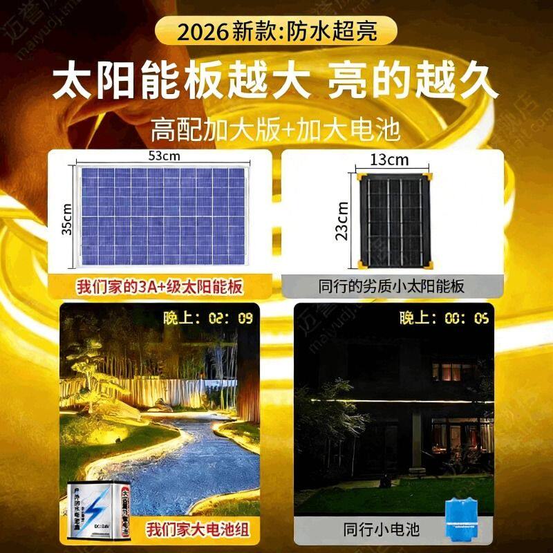 超亮太阳能灯带led防水庭院灯照明户外造景布置家用充电灯条自粘