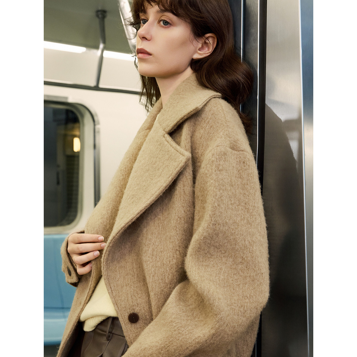 苏丽羊驼高定101801爆款大衣双排扣女短款秋冬毛呢外套