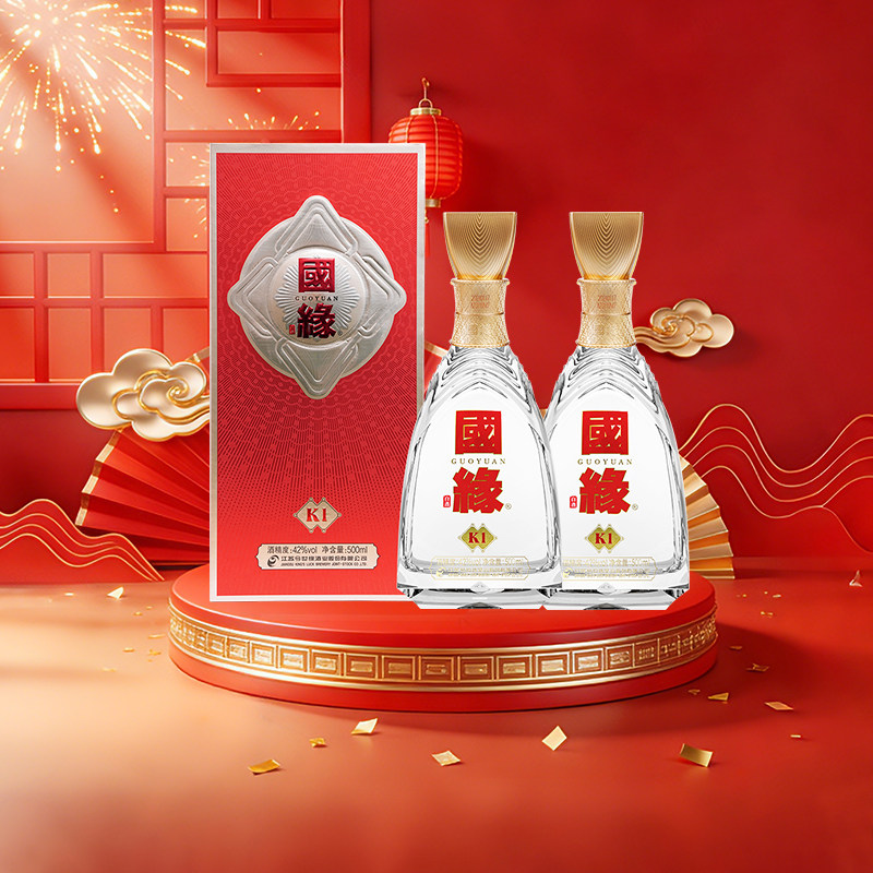 今世缘国缘K1浓香柔雅酒水42度500ml*2两瓶装婚宴喜宴用酒