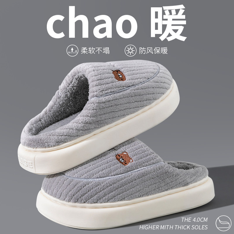 大码踩屎感棉拖鞋男士2025新款秋冬季保暖拖鞋男款防滑室内居家用