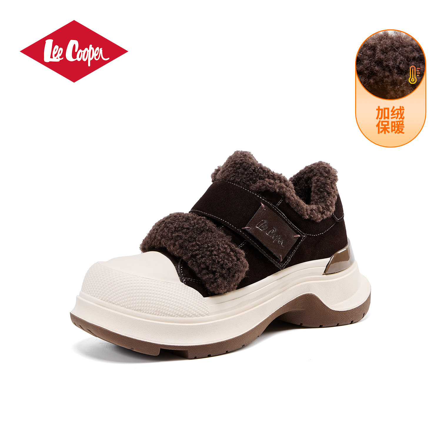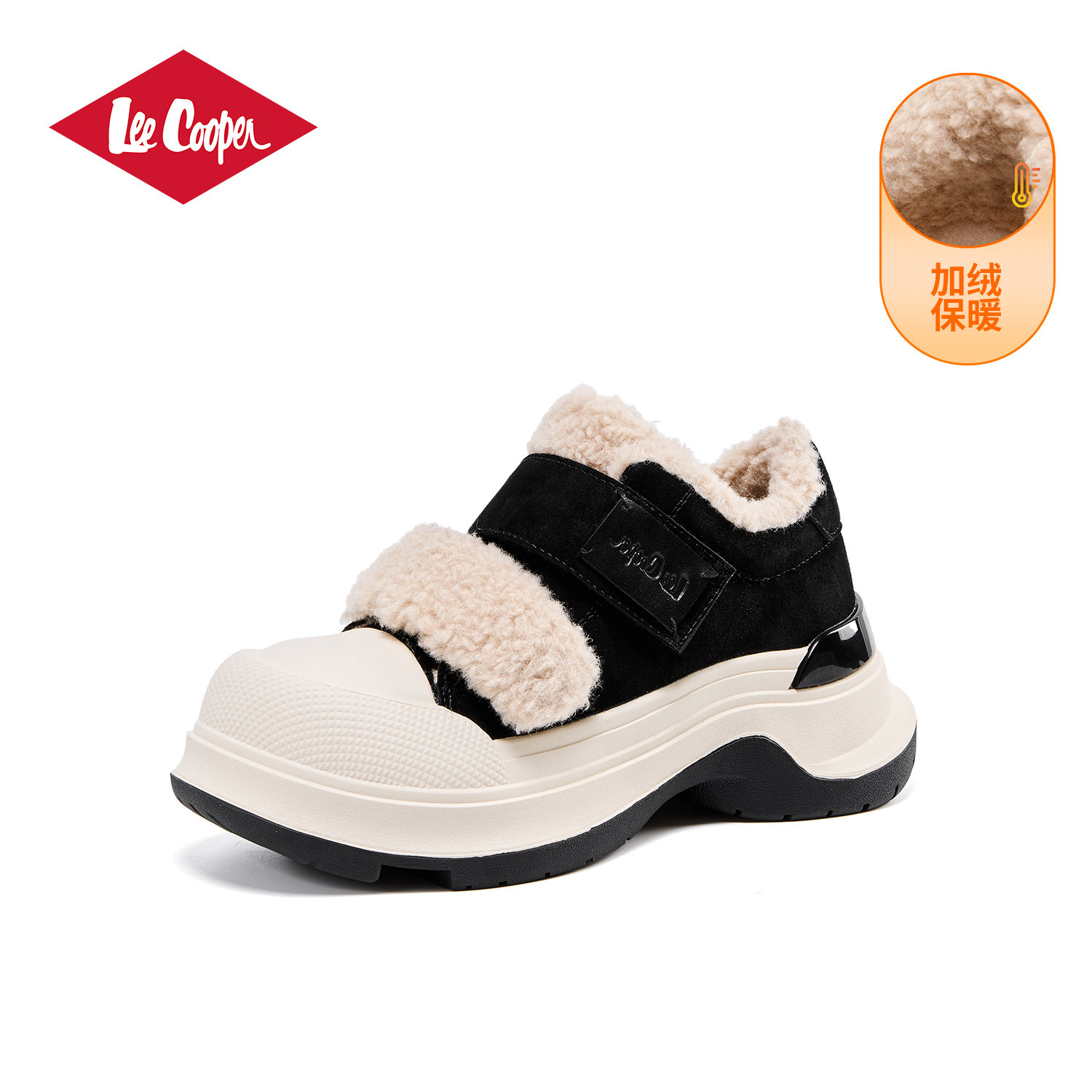 Lee Cooper加绒加厚毛毛鞋女冬季新款保暖女鞋增高厚底运动老爹鞋