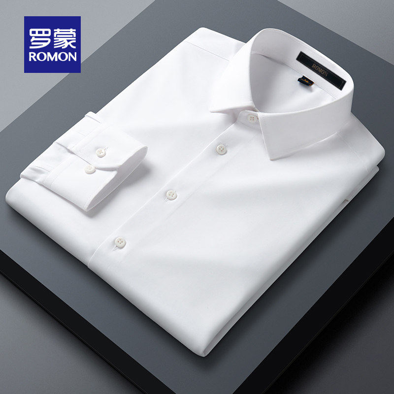【免烫抗皱】金利来秋冬磨毛莫代尔白衬衫男休闲白色结婚长袖衬衣