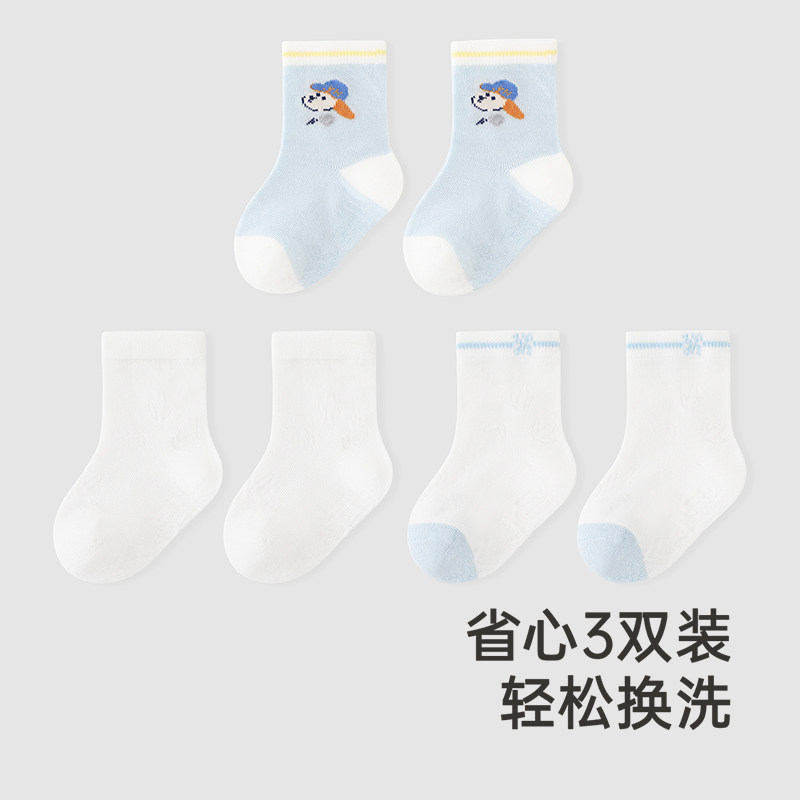 【商场同款】英氏婴儿袜子夏季薄款蚕丝透气7A抗菌宝宝短袜三双装