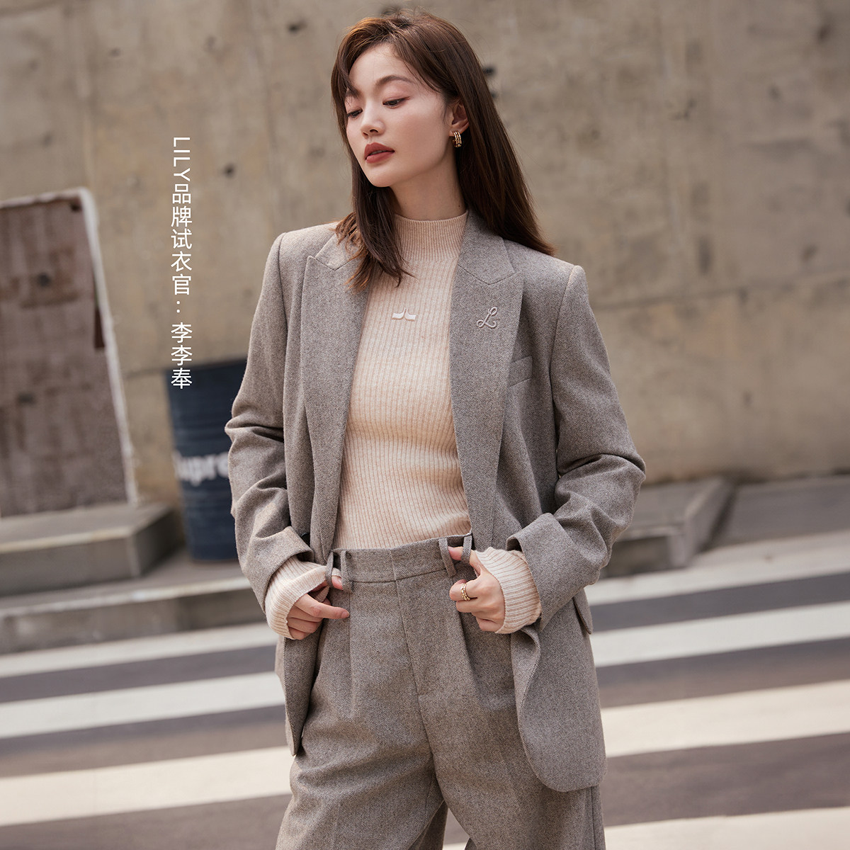 LILY绵羊毛经典休闲通勤气质西装女装高级套装新款西服外套