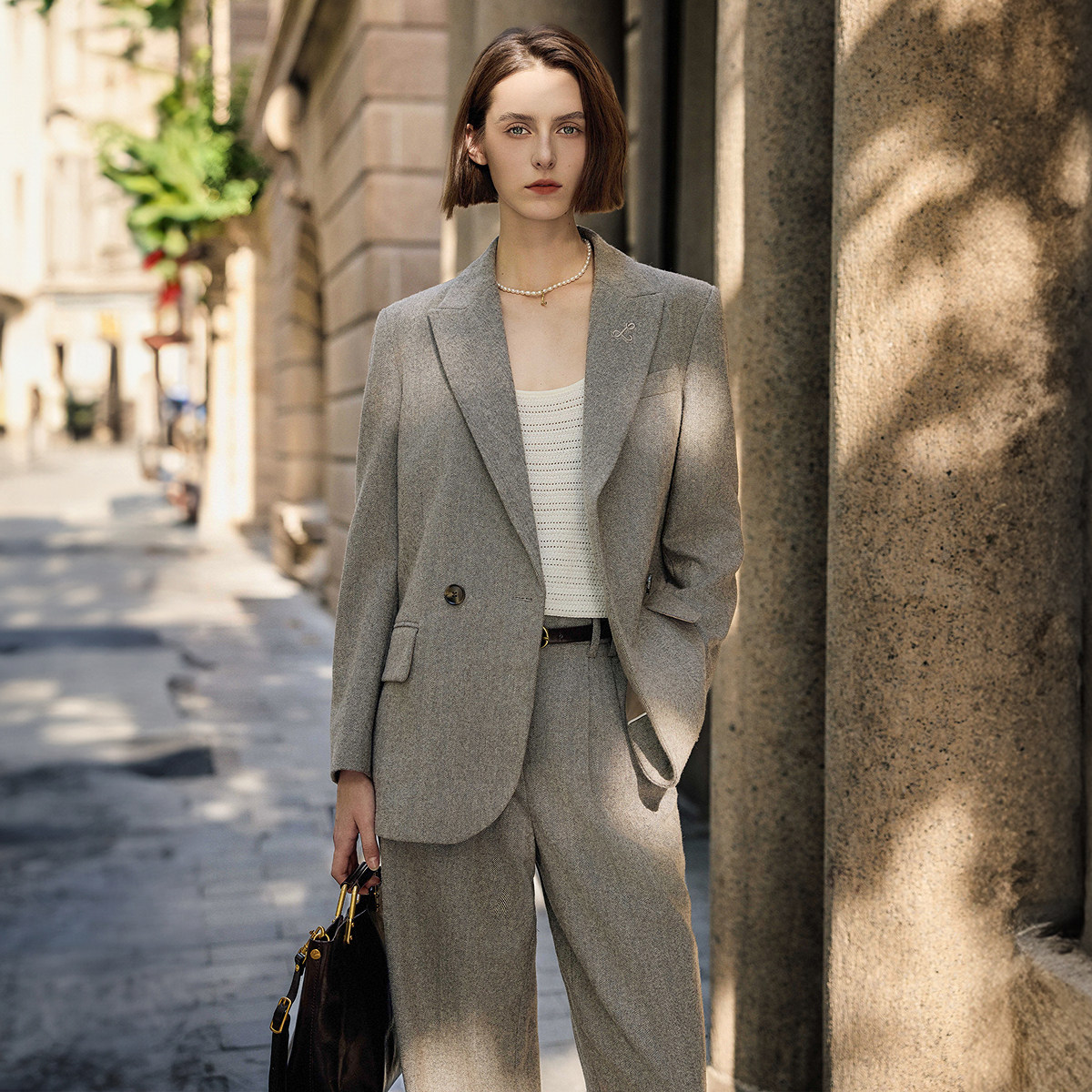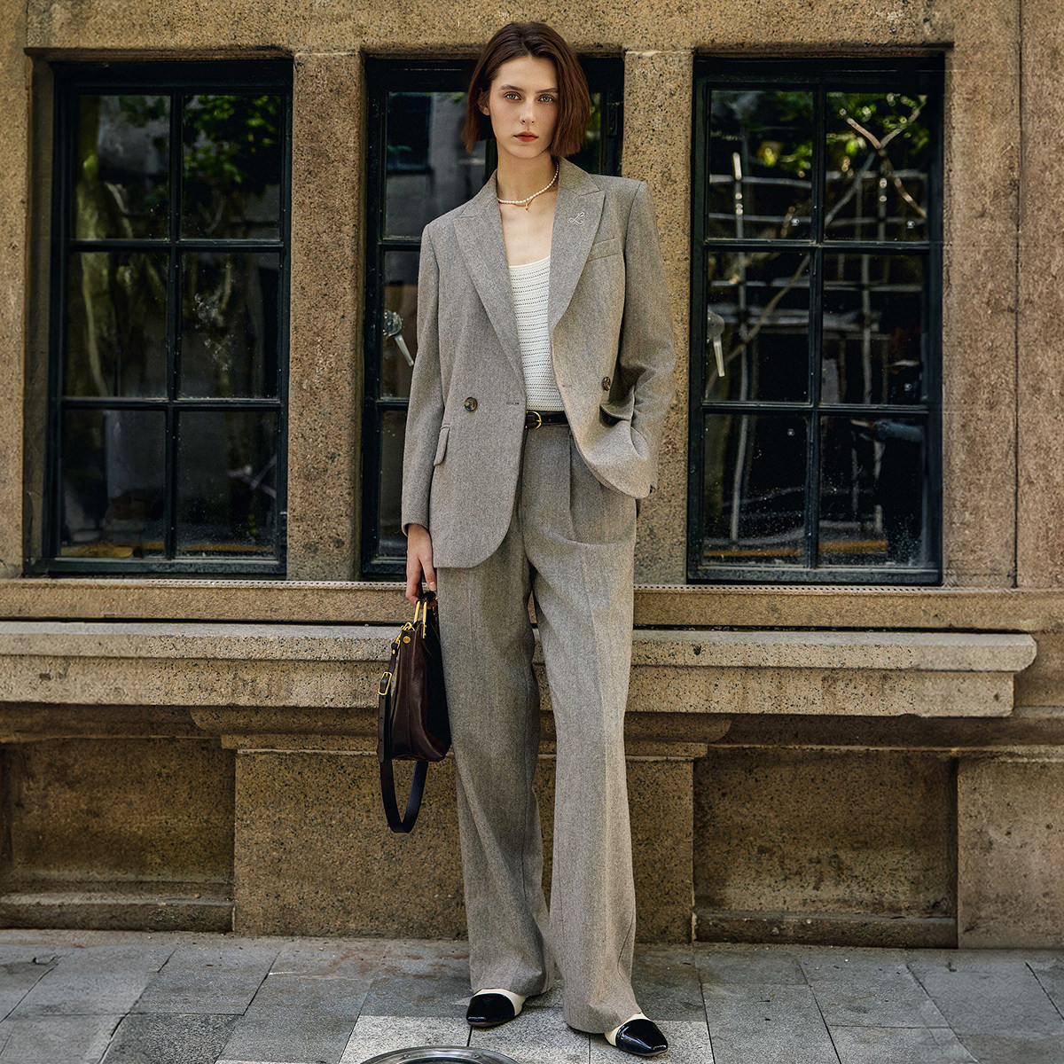 COCOBELLA老钱风精纺花纱羊毛正肩西装女春气质休闲外套SI7029