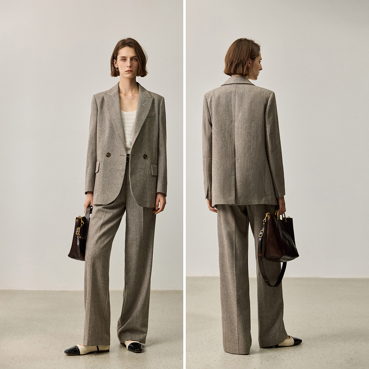 【100%美丽诺羊毛】Eland衣恋西装女通勤人字呢外套2025冬季新款