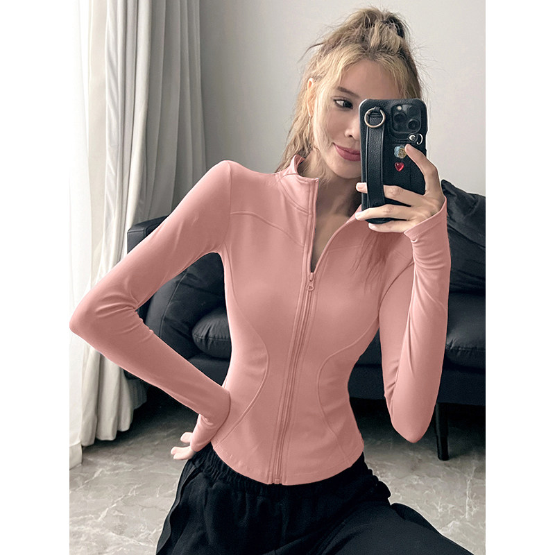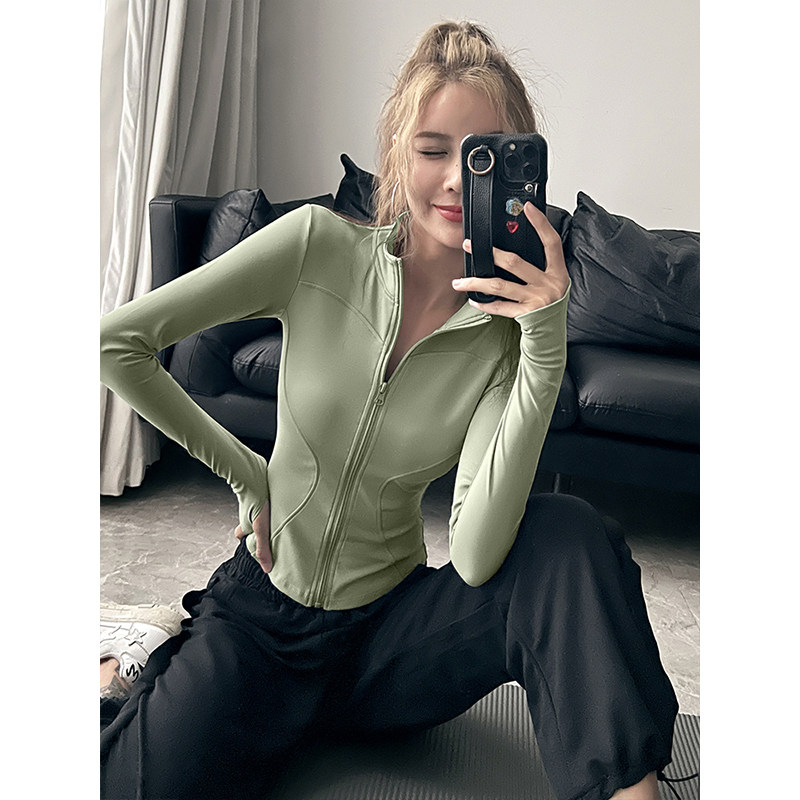 瑜伽服外套运动骑行服秋冬款修身女款透气长袖上衣健身服速干白色