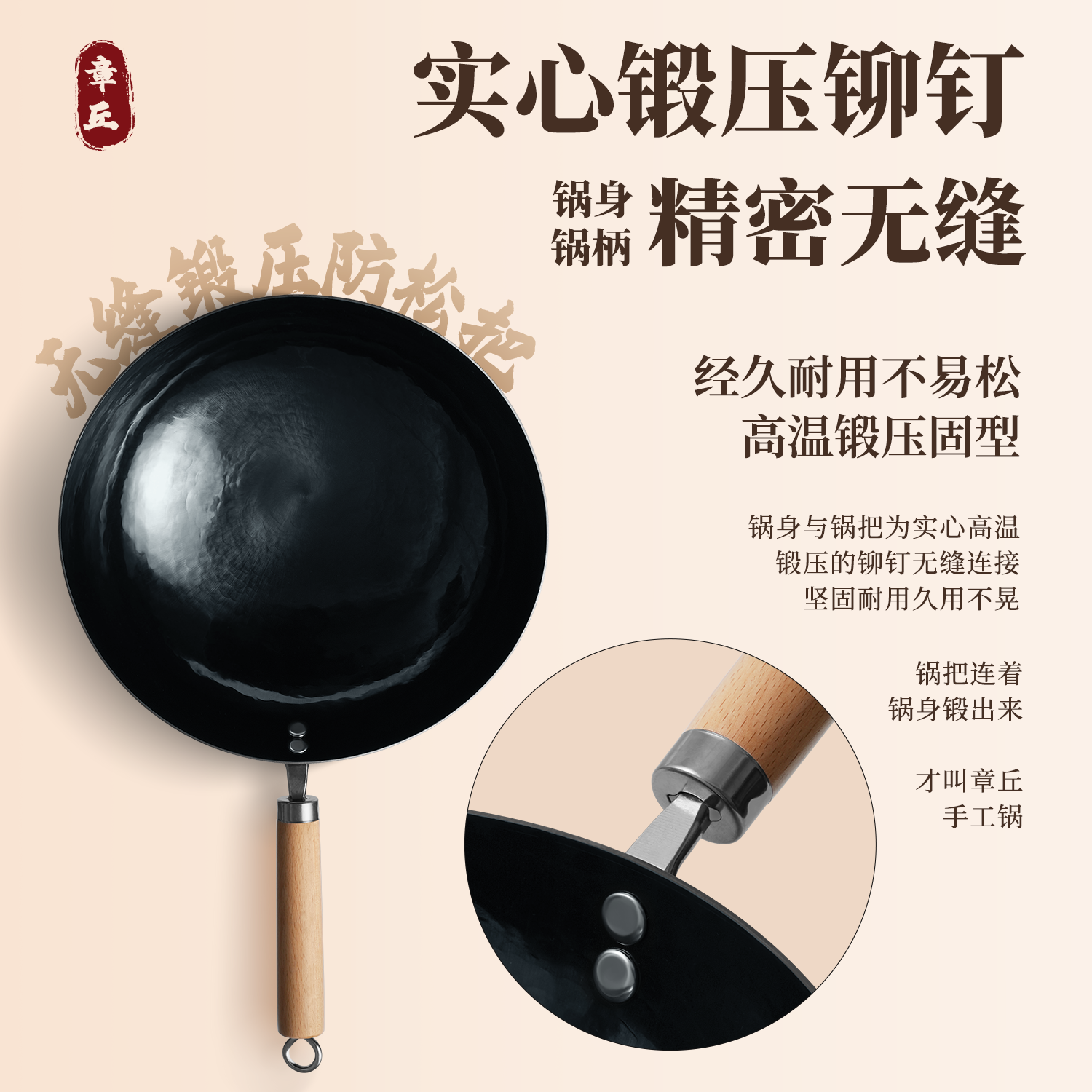 章丘手工铁锅锻打无涂层家用老式官方旗舰店正品纯炒菜锅炒锅正宗