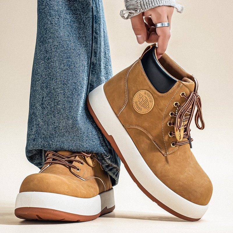 高帮男鞋冬季潮流英伦复古工装大黄靴男士防滑运动大头马丁靴