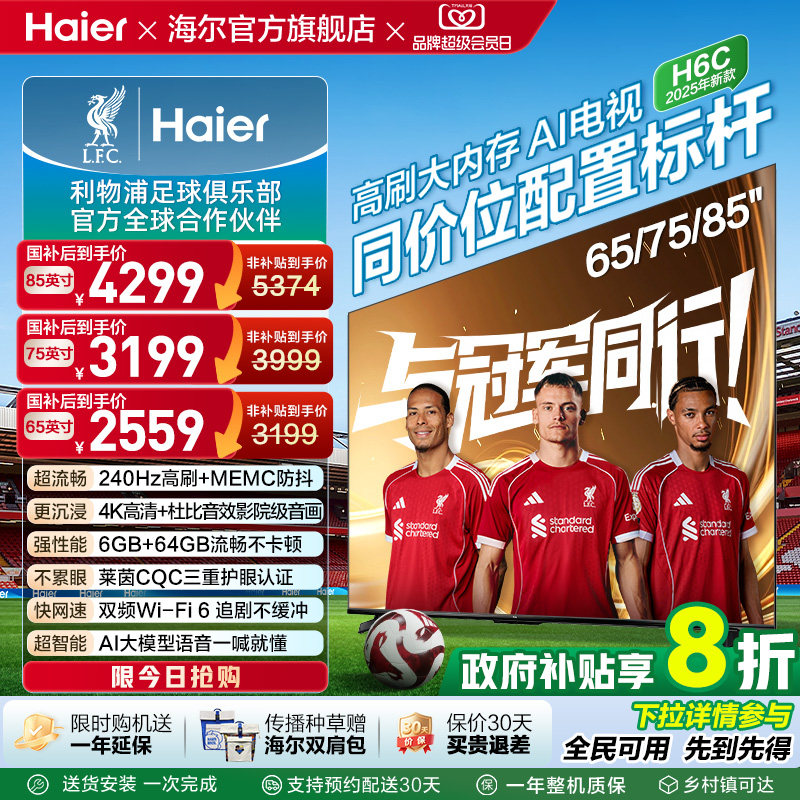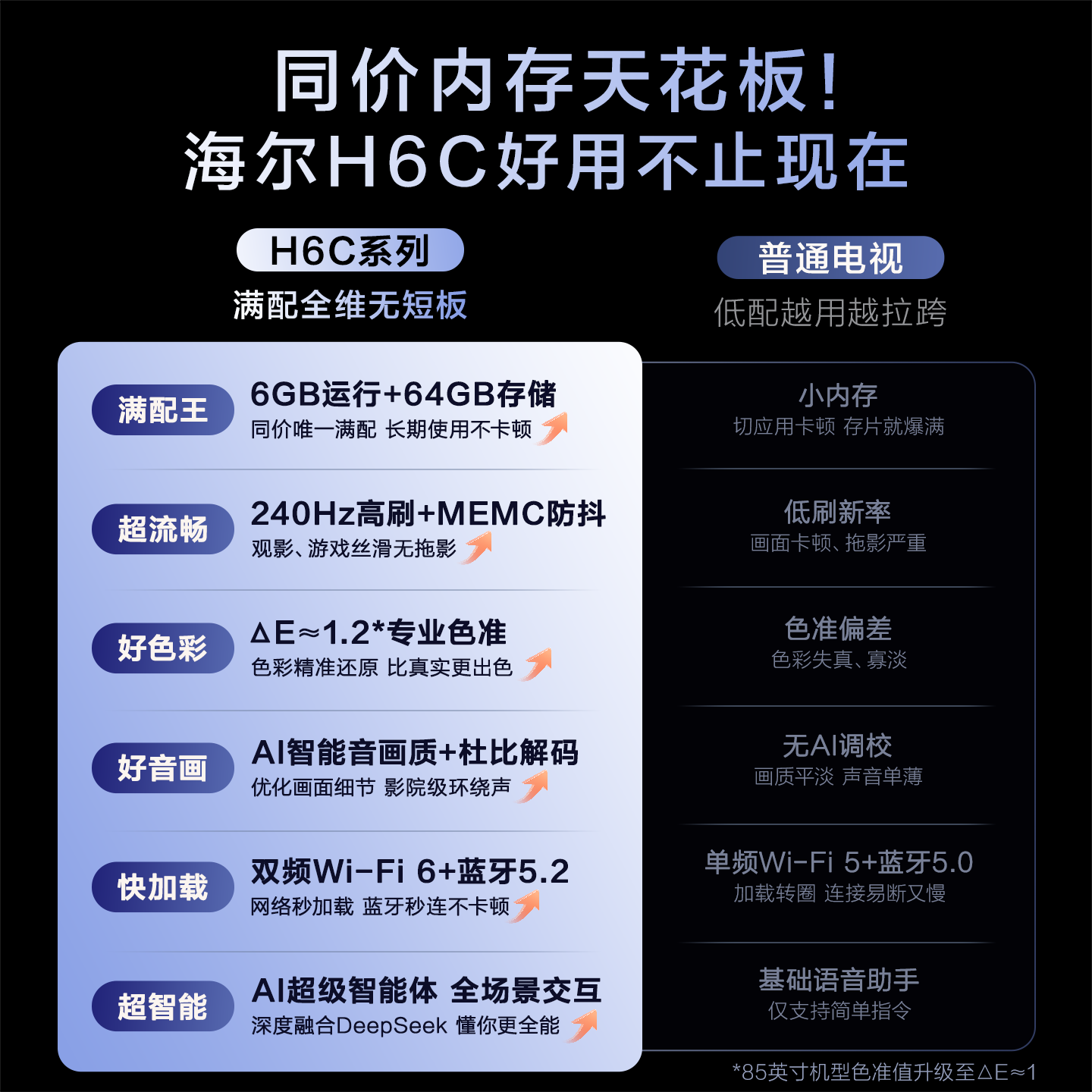海尔H6C电视85英寸75英寸65英寸液晶电视机家用85H6C 75H6C 65H6C