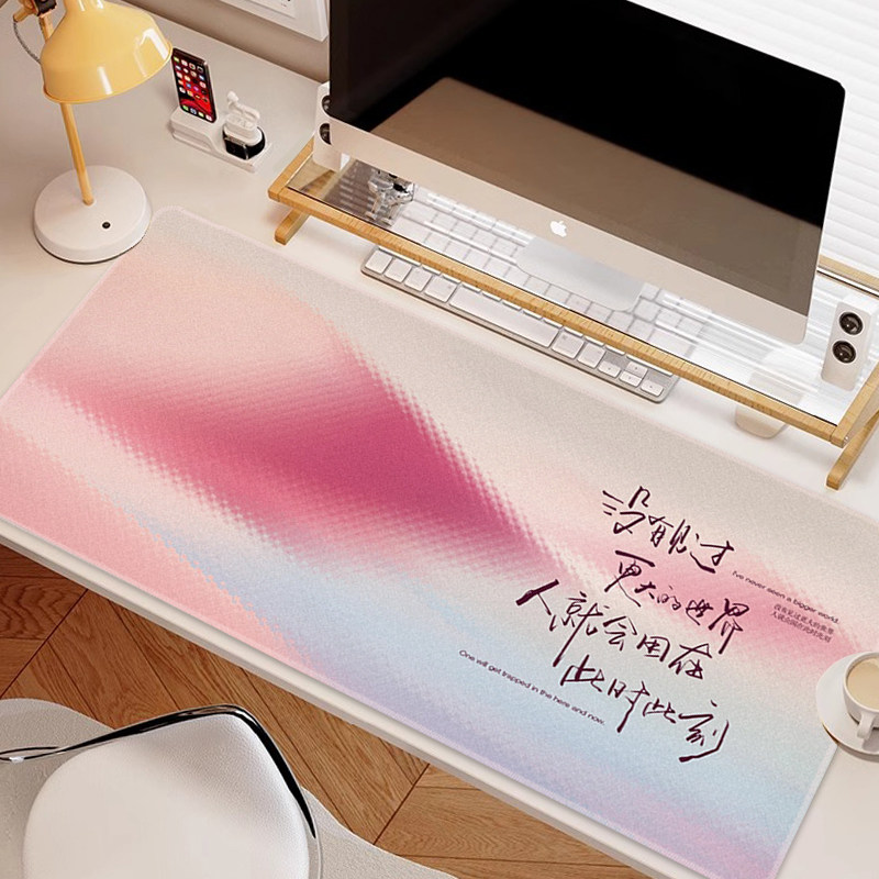 鼠标垫轻奢高级感渐变黑粉极简风定制超大电竞高颜值办公键盘桌垫