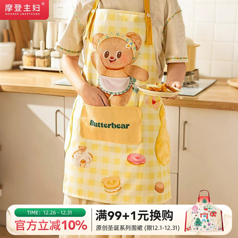 【摩登主妇&黄油小熊】围裙厨房家用2025新款可爱防油防水可擦手