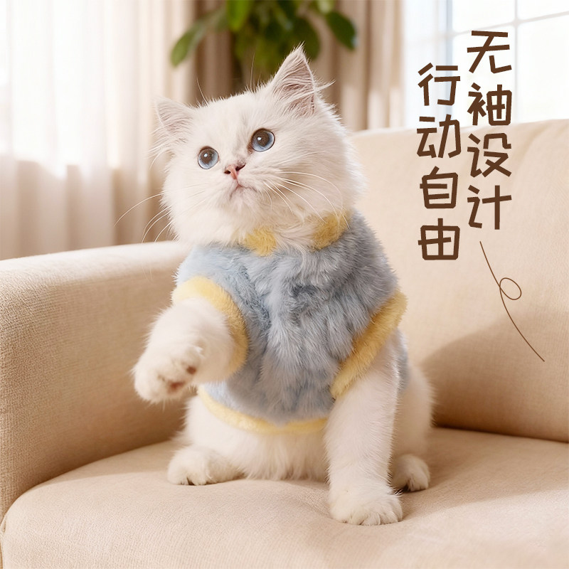 可爱秋冬季猫咪衣服狗狗冬保暖加厚背心防掉毛宠物衣服小型犬醒狮