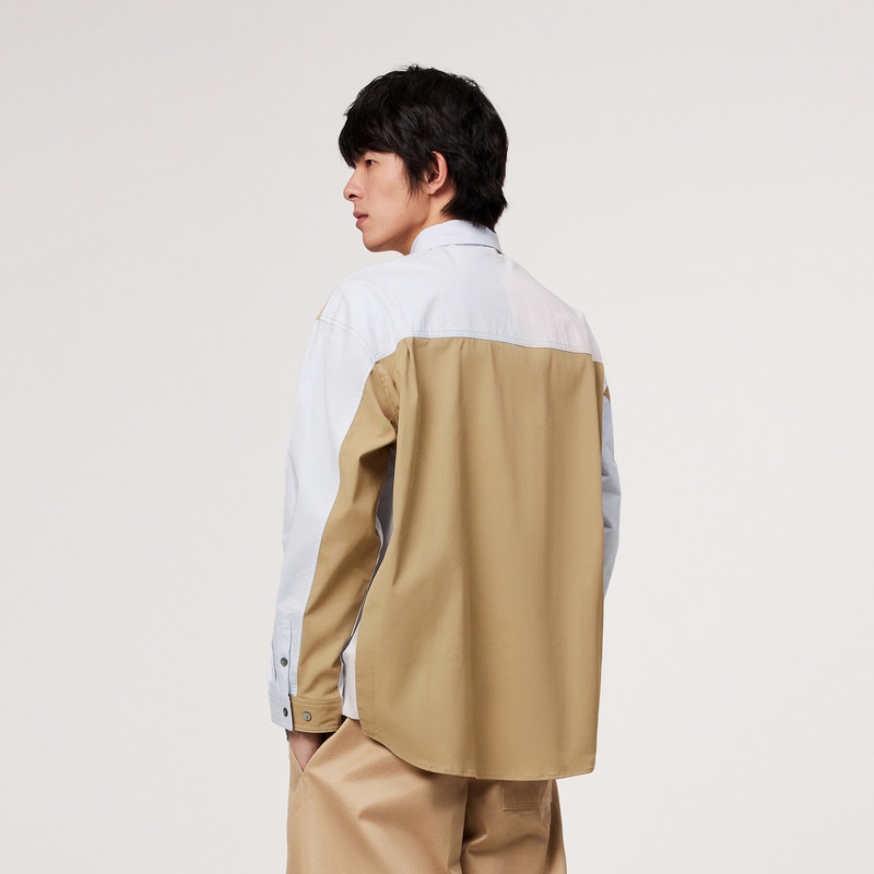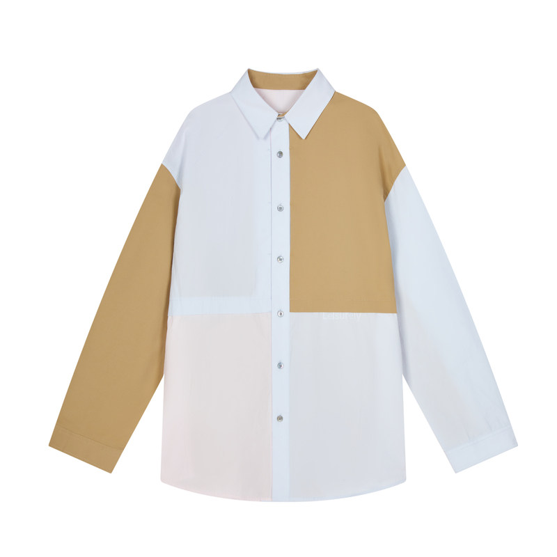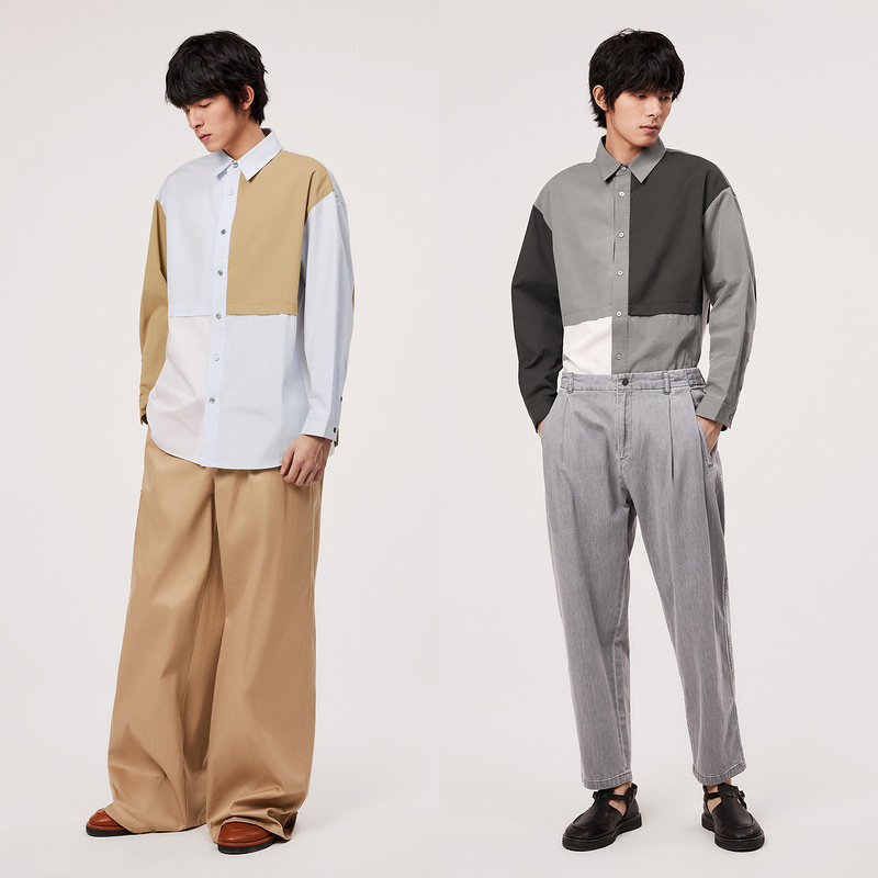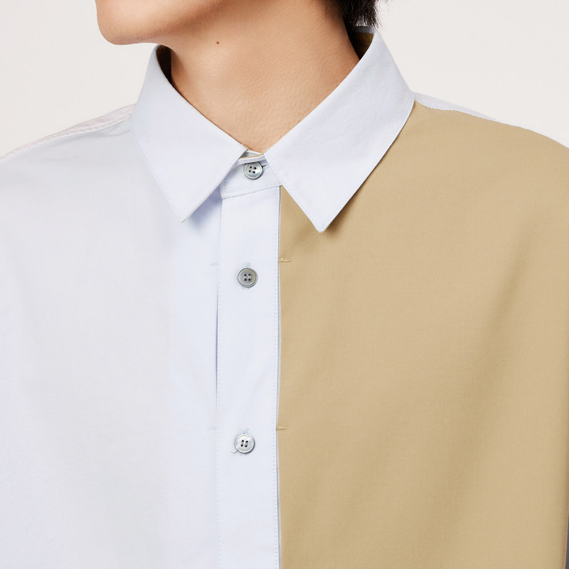 速写男装翻领长袖男士衬衫拼接撞色前卫时尚设计简约休闲上衣衬衣