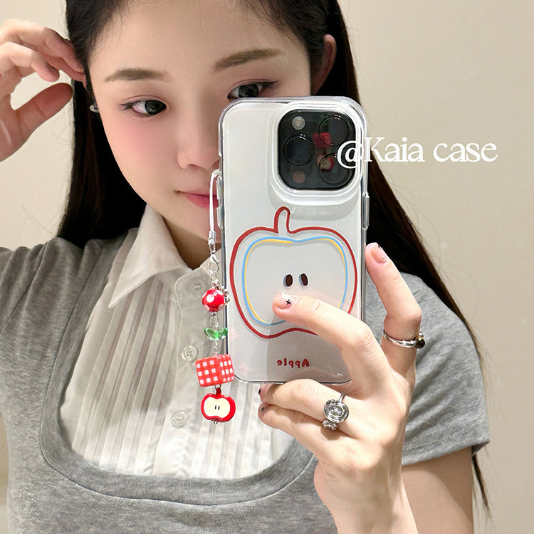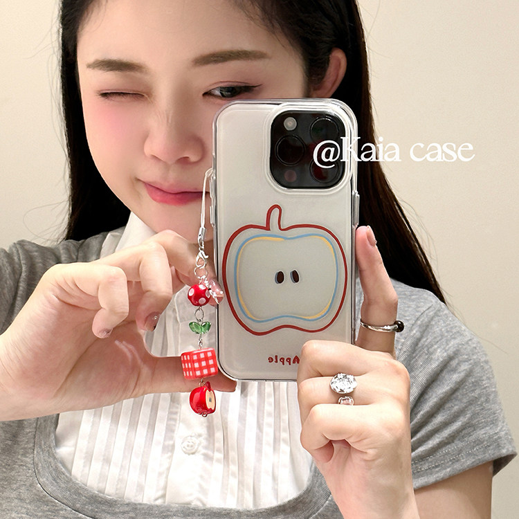 kaia ins极简小众涂鸦线条红苹果适用苹果17promax手机壳iphone13新款15女14pro筛子挂件16pro双层防摔手机套