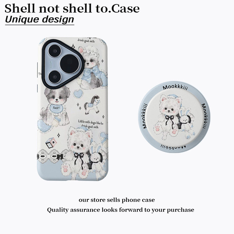 卷毛蓝肚兜狗磁吸菲林二合一适用oppo小米17p/vivo手机壳华为p80可爱小狗保护套女款ins卷毛狗手机套卷毛小狗
