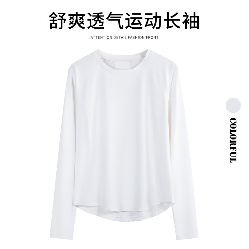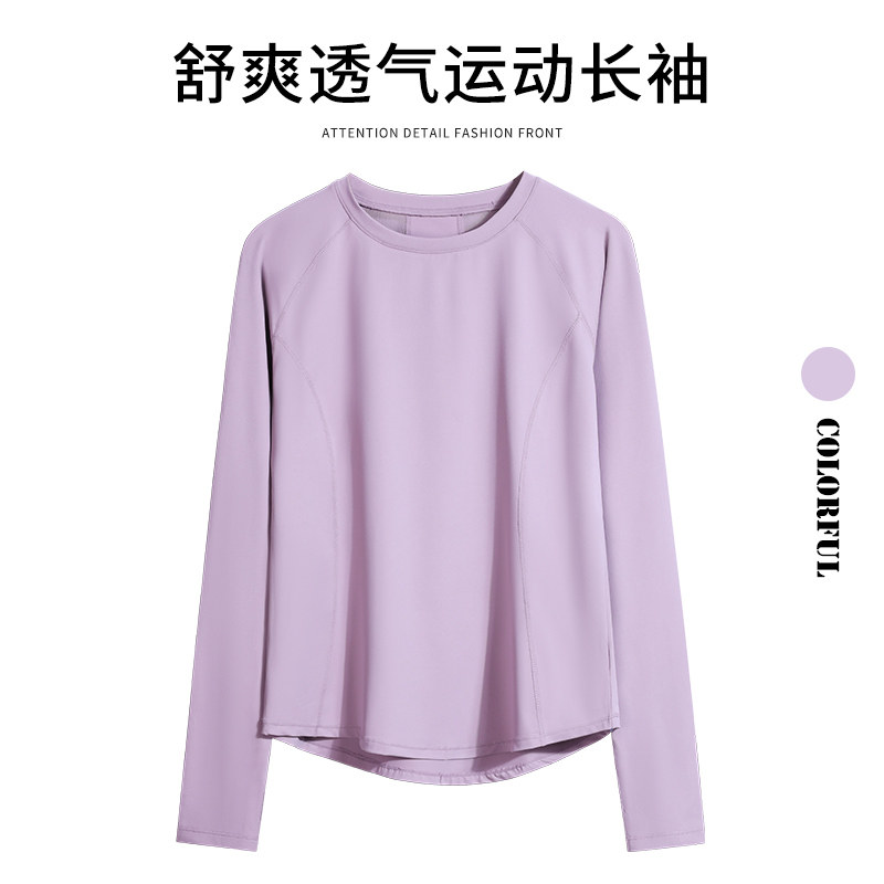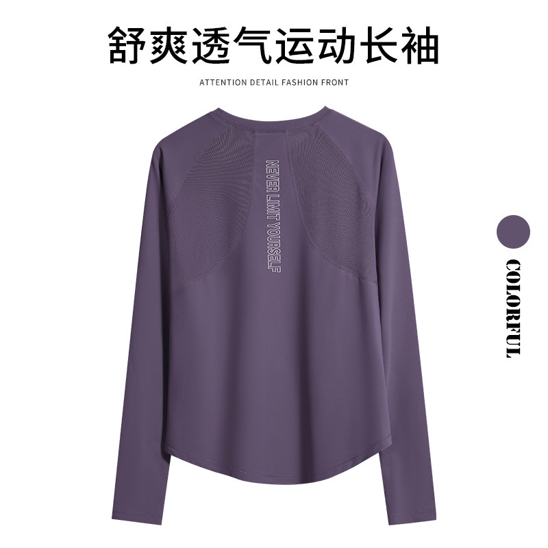 网纱透气速干衣女春季新款长袖瑜伽服上衣跑步运动健身服训练黑色