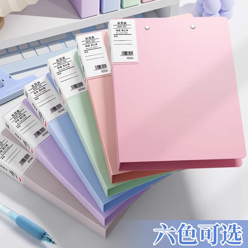高颜值马卡龙彩色A4文件夹金属双夹板夹