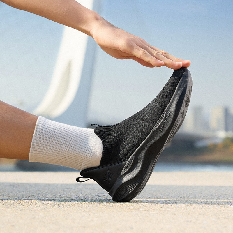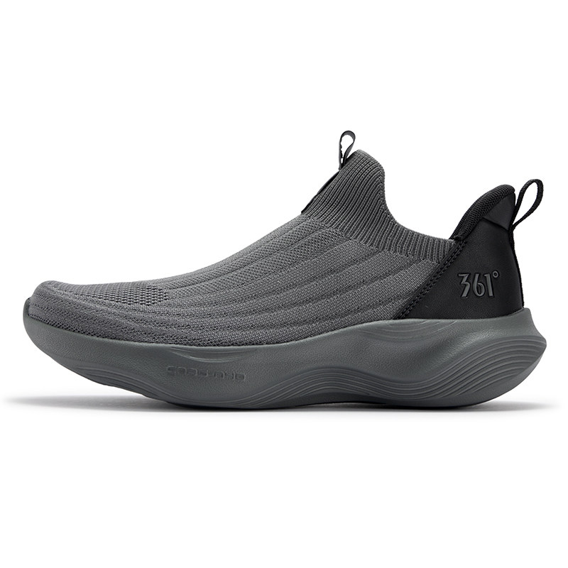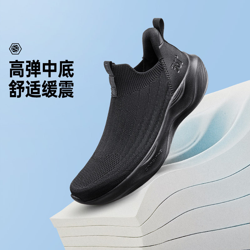361度懒人一脚蹬男鞋黑色运动鞋春季新款网面透气软底回弹跑鞋男