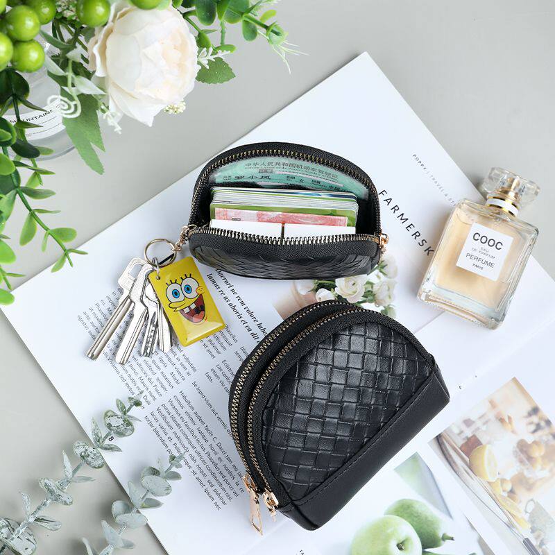 短款纯色拉链贝壳零钱包迷你高档精致小手包钥匙包小众设计硬币袋