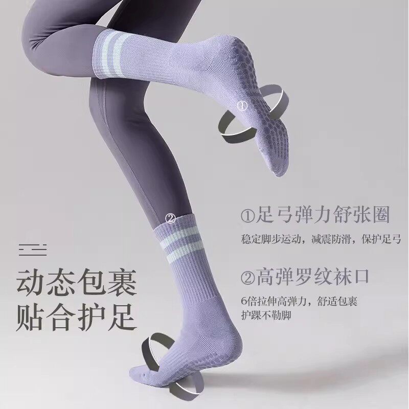瑜伽普拉提袜子防滑专业女中筒袜压力室内健身舞蹈运动瑜珈地板袜