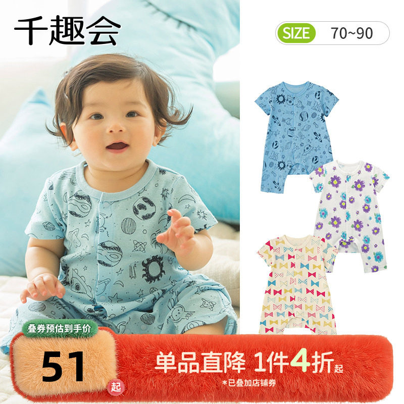 千趣会夏装婴童包屁衣卡通透气男女童短袖连体衣爬服