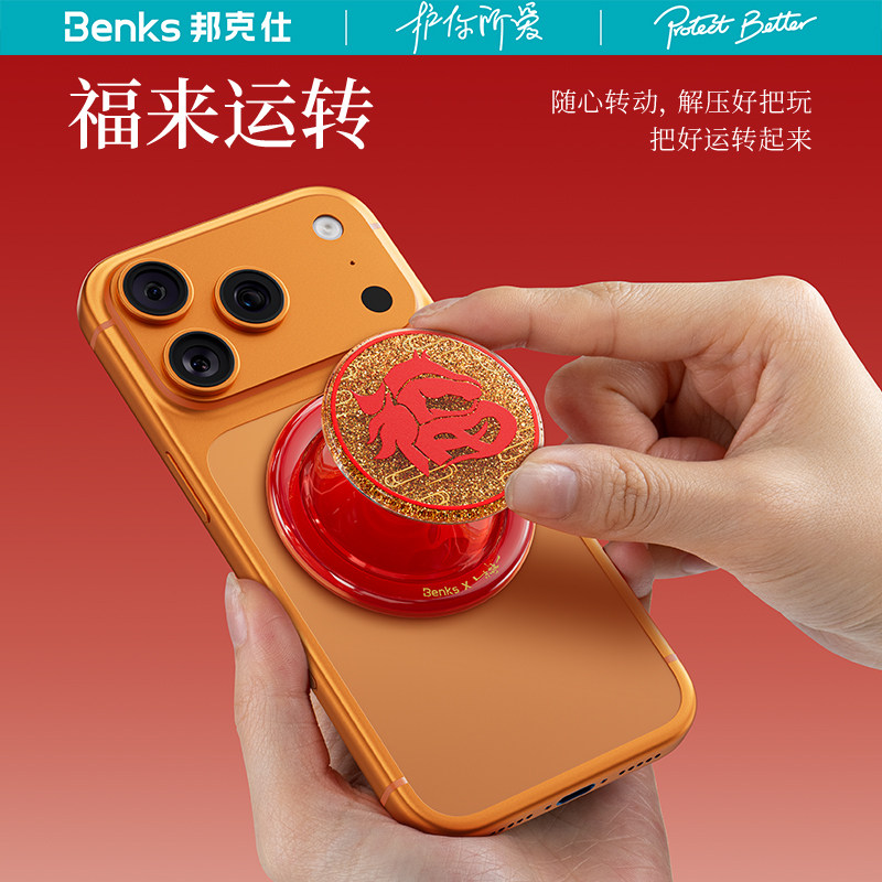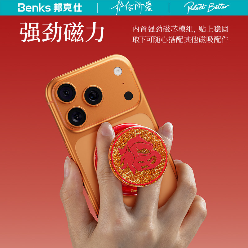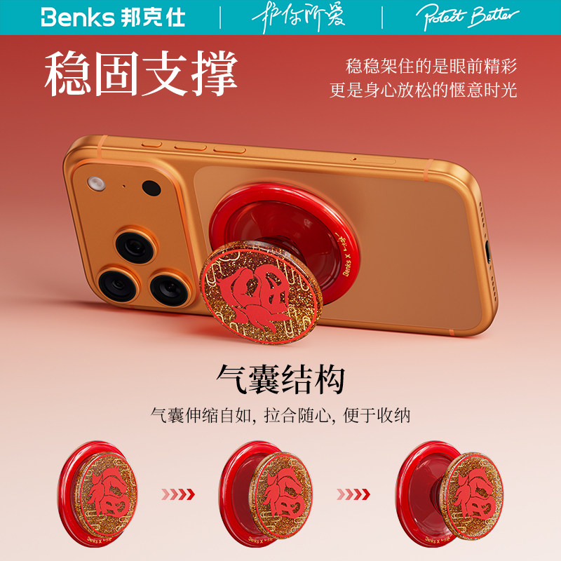 【马上有福】Benks灵磁旋转气囊手机支架MagSafe磁吸泡泡骚支架伸缩防摔指环扣适用于苹果iPhone马年新款