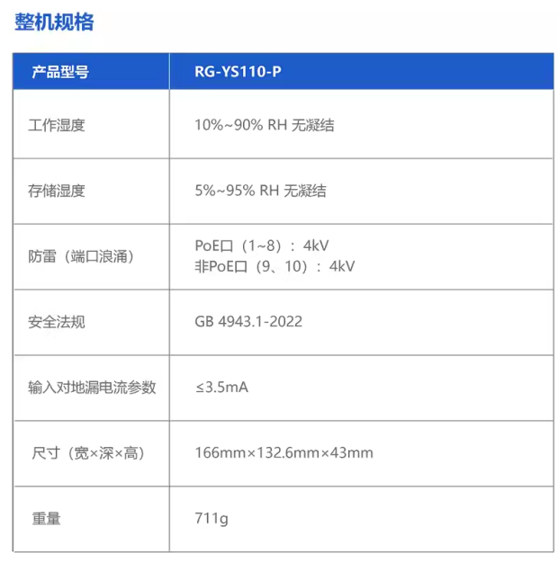 Ruijie/锐捷睿易网络POE交换机RG-YS110-P 10口百兆8口POE供电2口上联 非网管监控摄像头即插即用