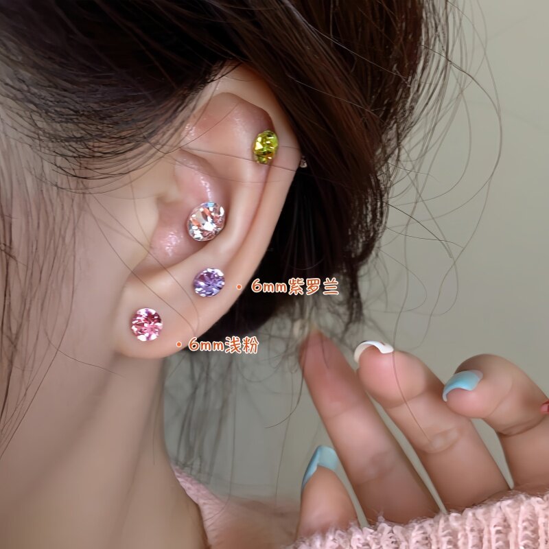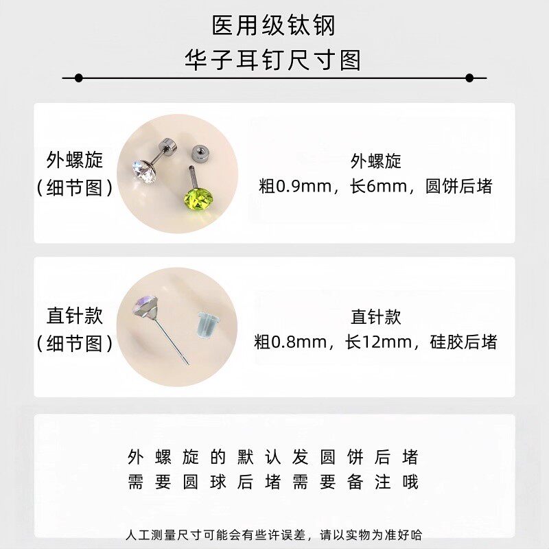 奥地利华子耳钉医用级钛钢爆闪防致敏洗睡免摘耳饰锆石螺旋小巧