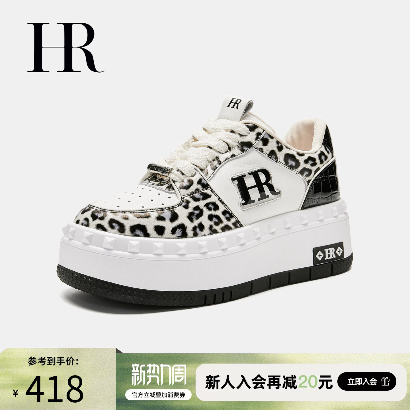 HR赫莲娜板鞋2026春季新款休闲女鞋子厚底原创豹纹百搭时尚小白鞋
