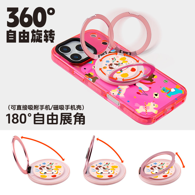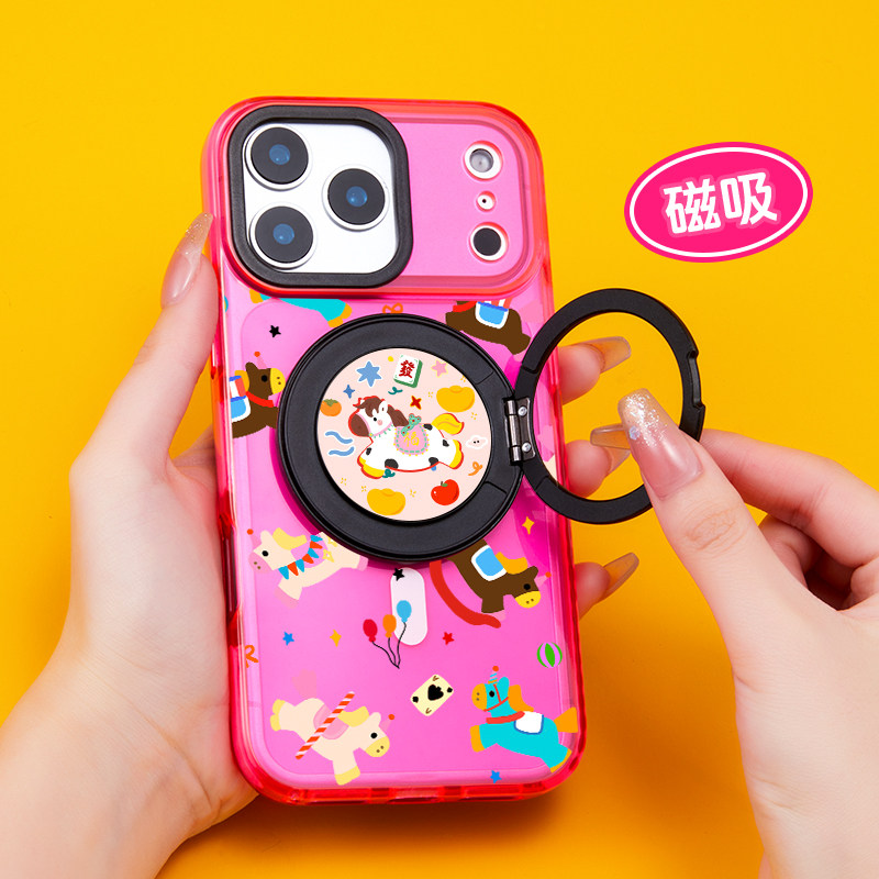 原创多巴胺生肖小马年新手机支架磁吸式指环扣桌面360°旋转背贴