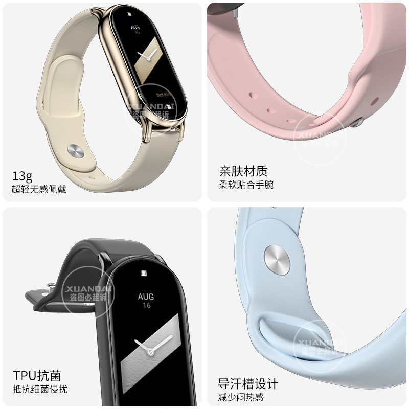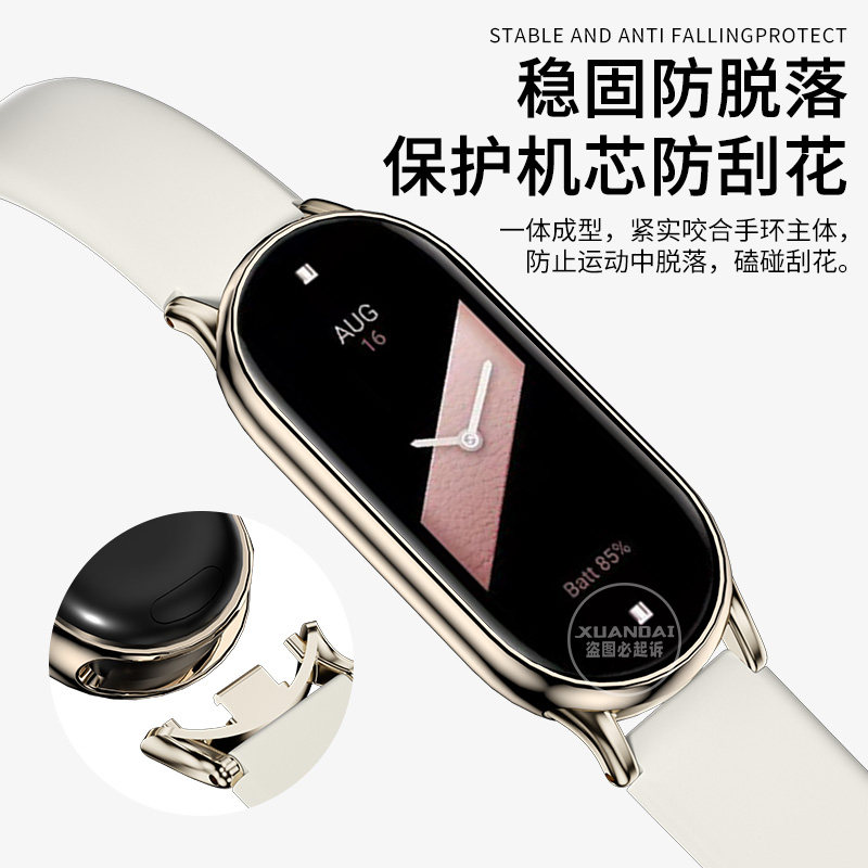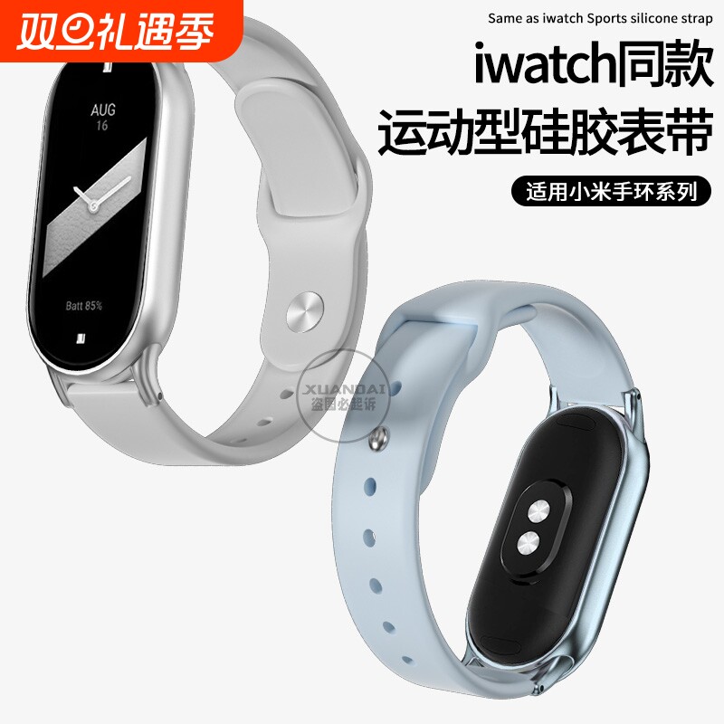 适用小米手环8/9表带新款反扣硅胶智能运动手环替换腕带通用NFC版配件八九代男女生透明保护壳膜