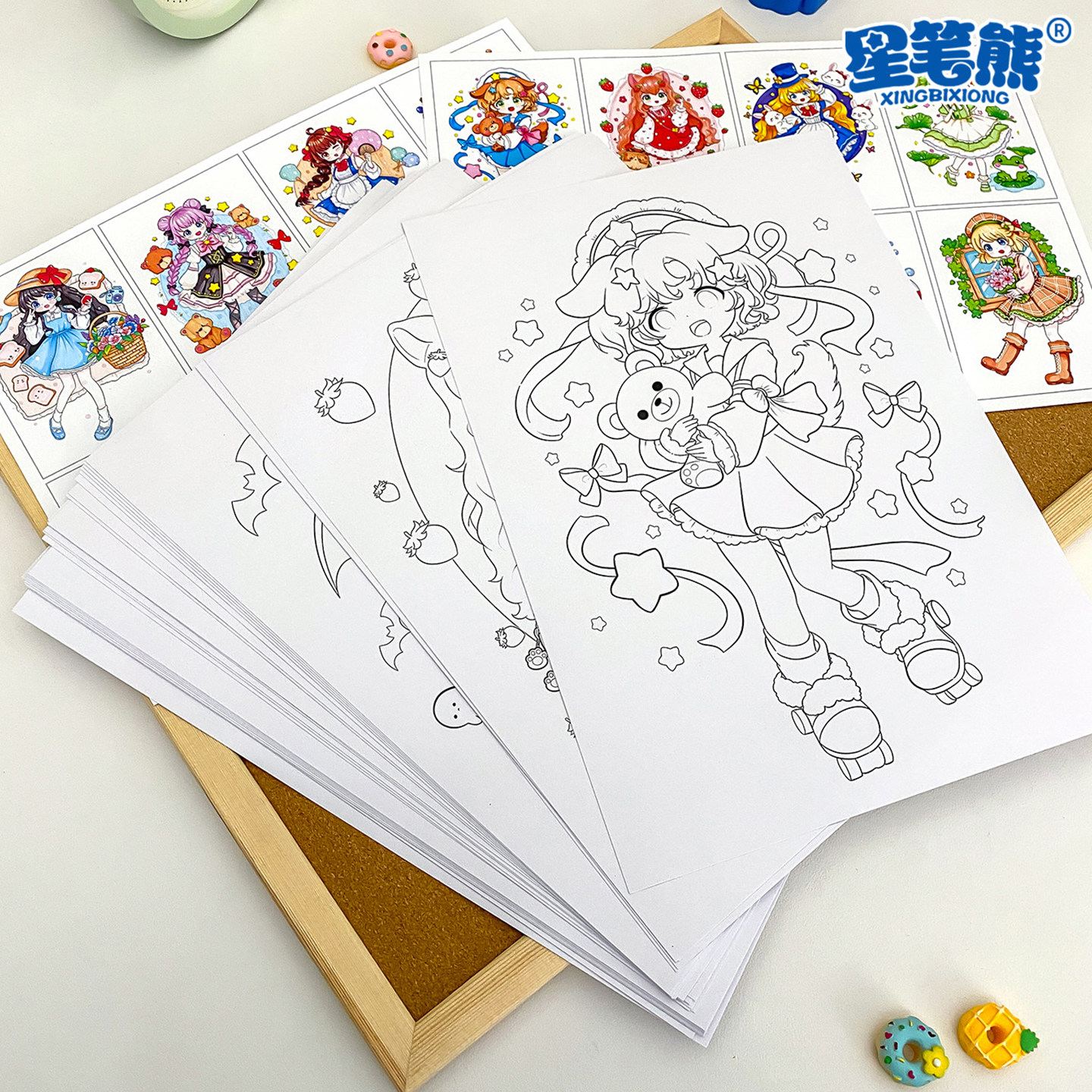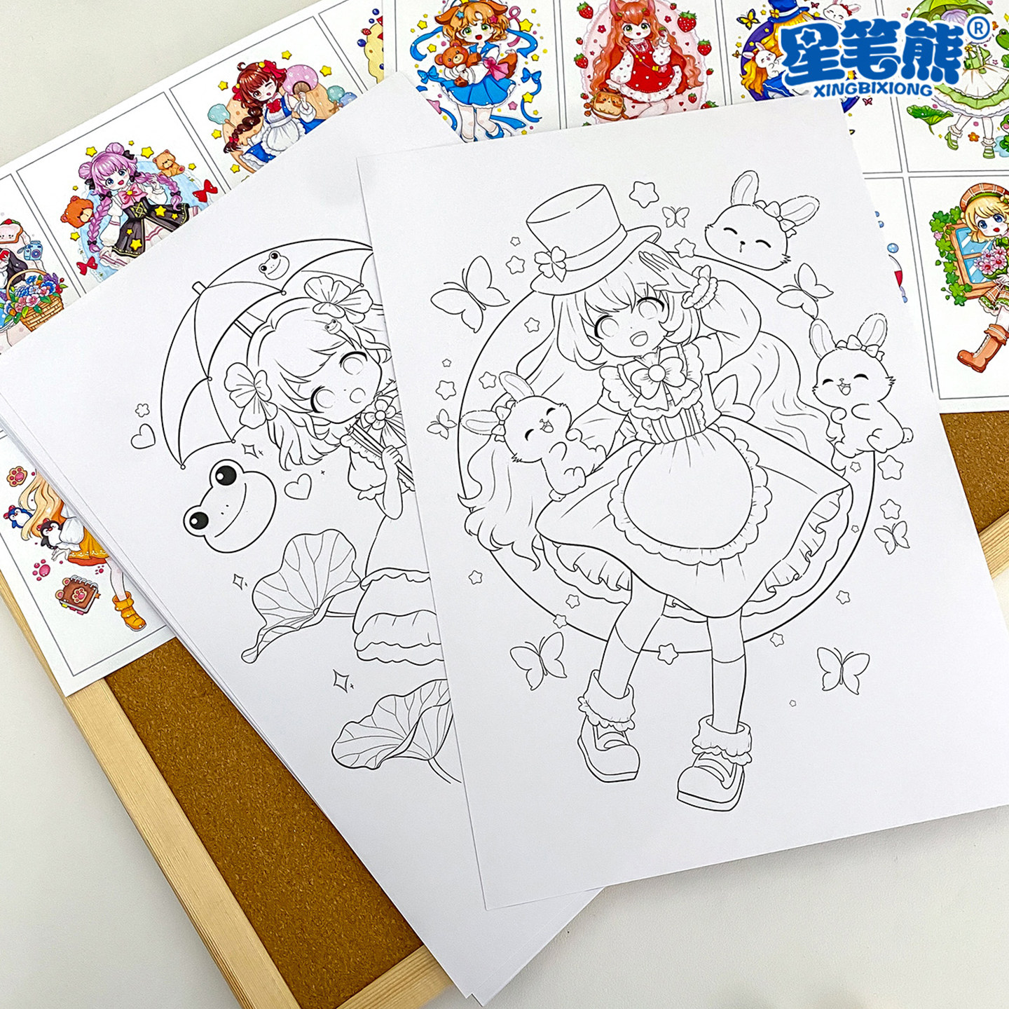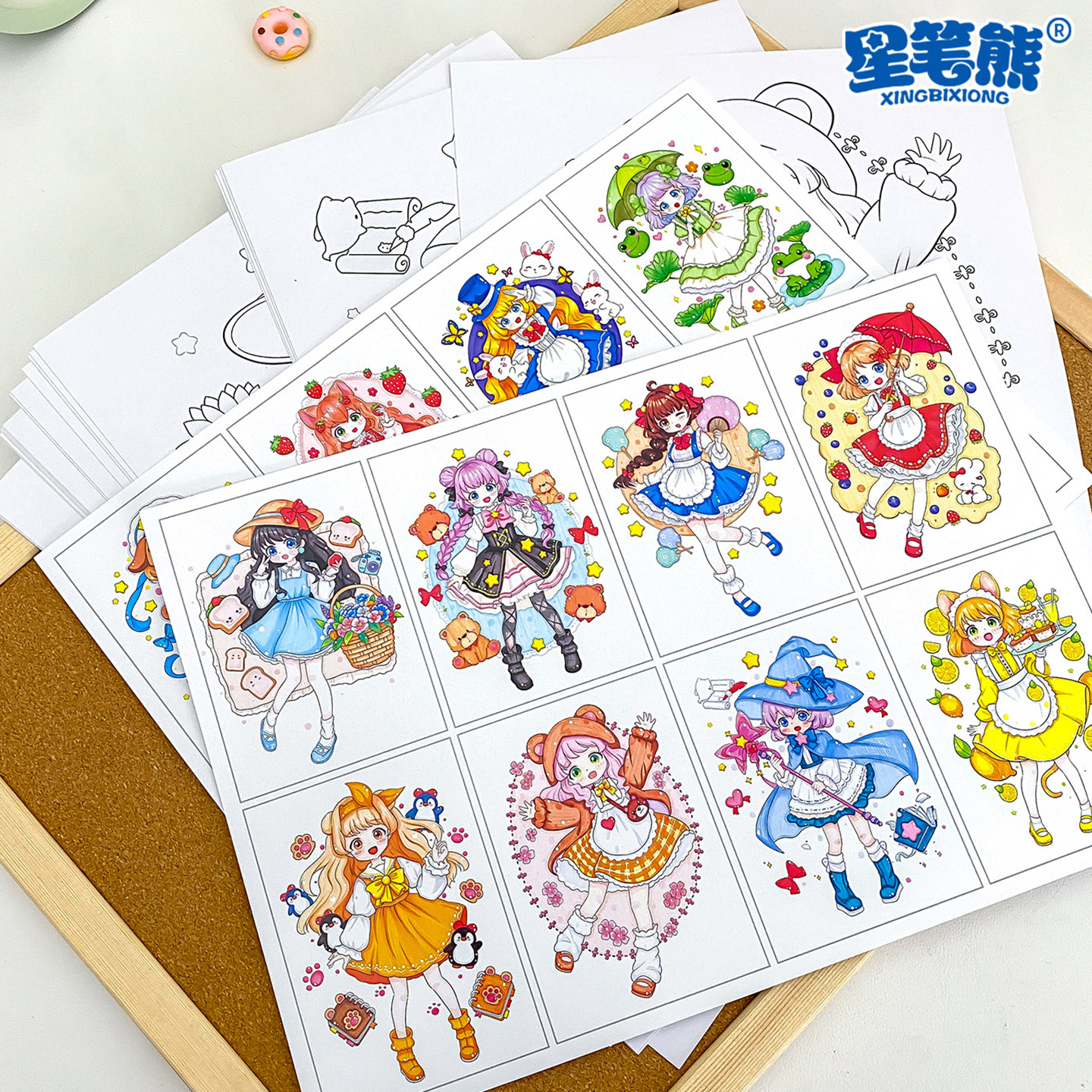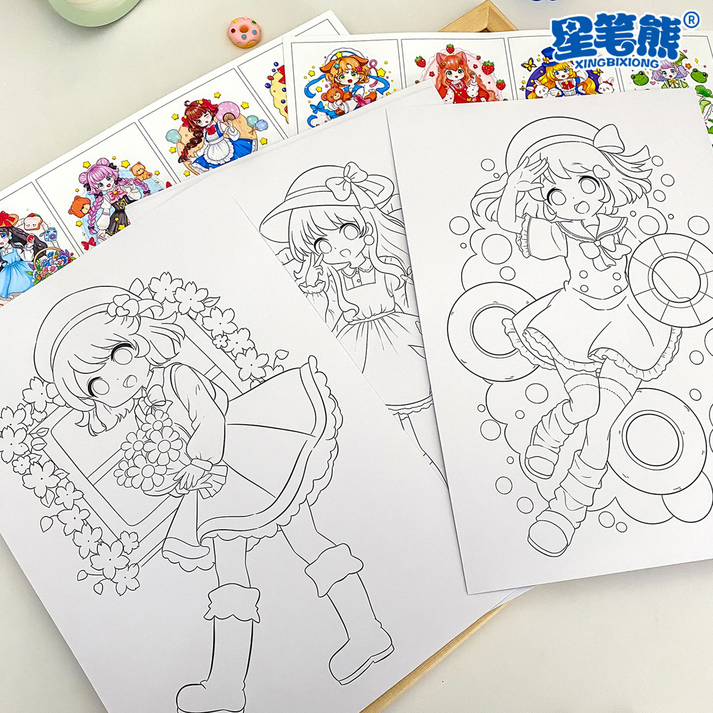 美术绘画涂色卡马克笔少女少男生动漫填色卡线稿少儿成人美术高清