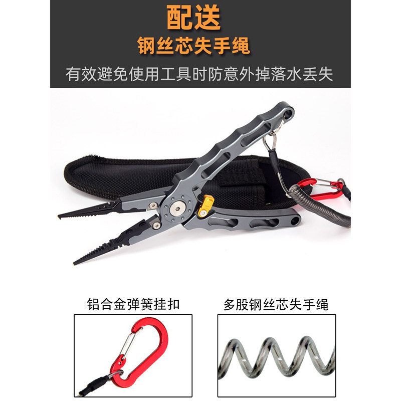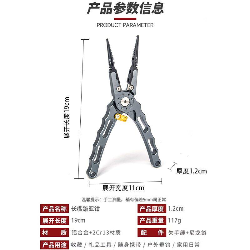 新款多功能路亚钳加长铝合金钓鱼钳控鱼器二合一套装长嘴摘钩钳