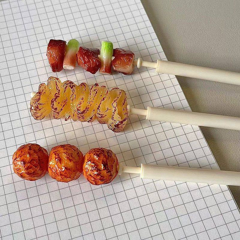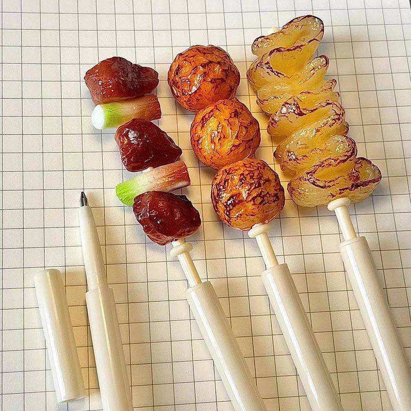 搞怪创意仿真烧烤圆珠中性笔个性烤串吃货个性可爱萌卡通学生0.5子弹头多功能学生专用黑色办公文具学习用品