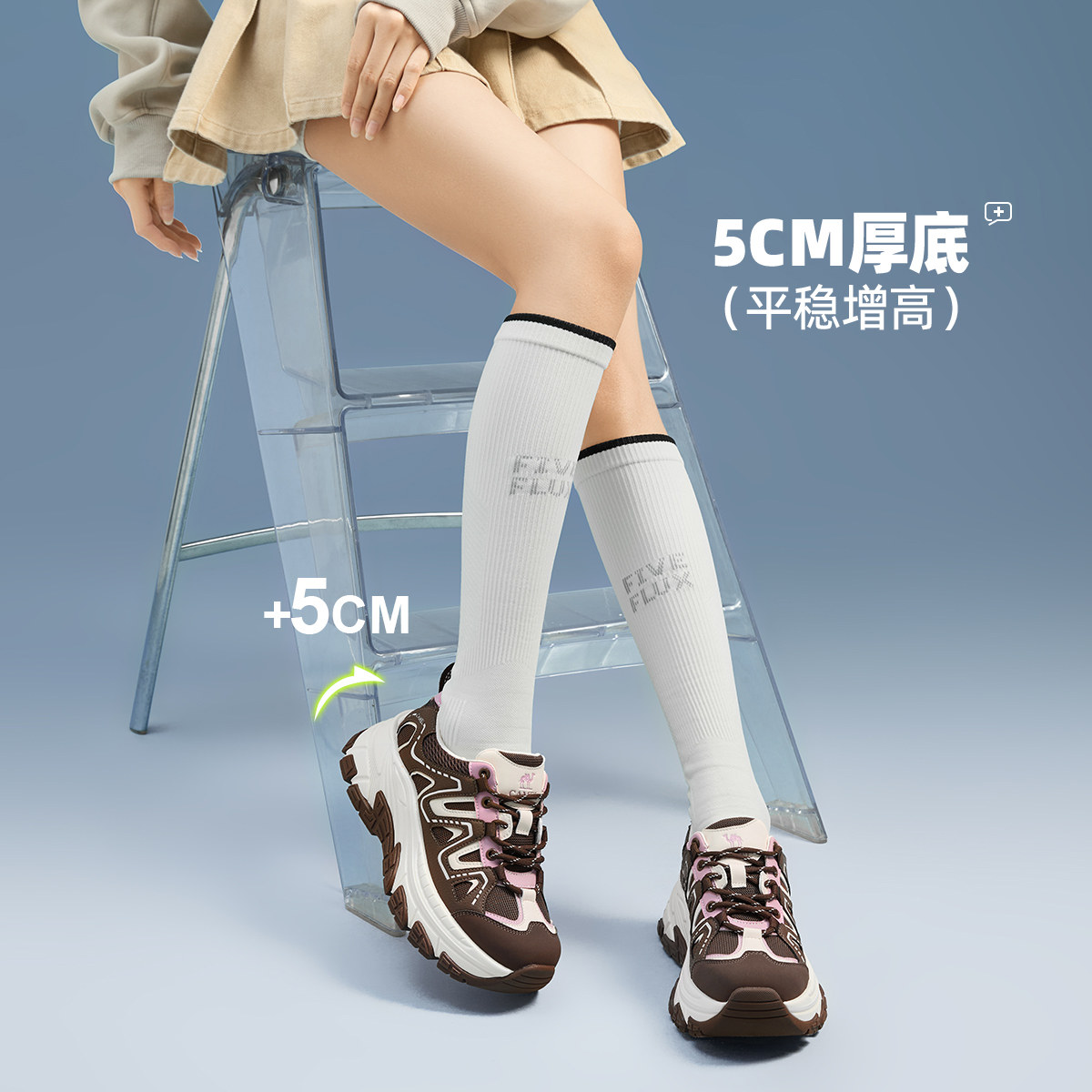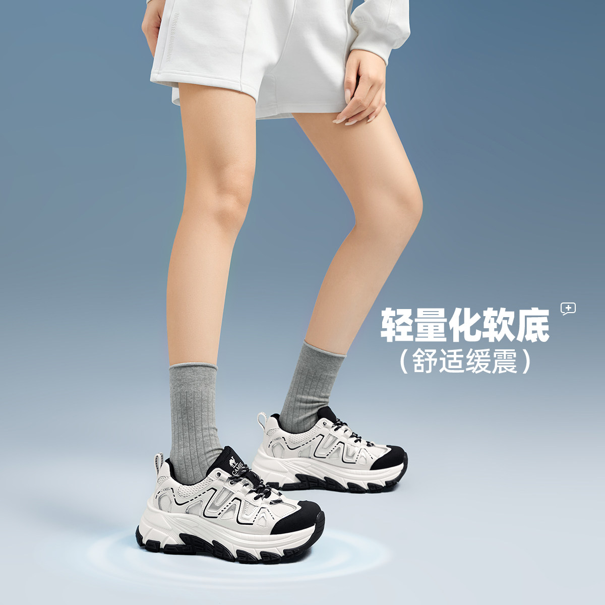 骆驼女鞋2026春季时尚厚底老爹鞋女增高运动女款休闲鞋